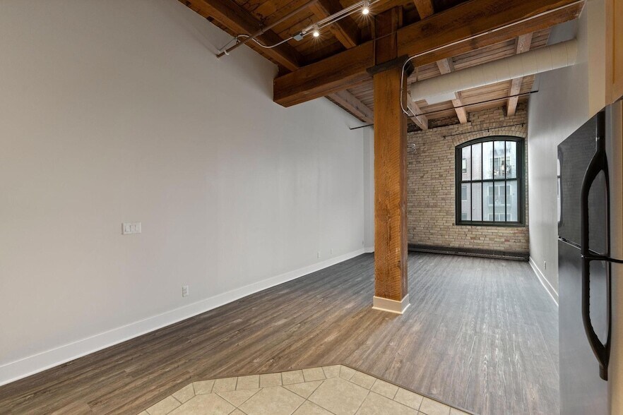 Welcome home to your newly updated Riverwalk Lofts 1BR with most utilities and parking included with rent. Riverwalk Lofts is a historic converted warehouse nestled steps from riverfront parks and trails, but walkable to the North Loop's signature restaurants, retail and nightlife. Stepping in you ll love the 14 ft ceilings, exposed exterior brick, and timber beams. Smart updates include plenty of closet space & cabinetry, updated lighting, stone countertop & tiled backsplash in the kitchen, and in-unit 2-in-1 washer/dryer. Included with rent: 1 indoor/heated pkg stall, 1 storage unit, basic internet, gas, and water/sewer/trash. Tenant responsible for electricity. App Fee: $78 per adult; Admin Fee $150; HOA move-in fee: $350; Security Deposit is One Month s Rent.