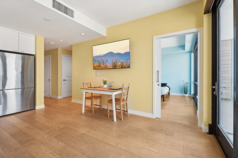 Property Id: 1822546 Elevate Your Lifestyle at Perla on Broadway! Experience the ultimate in downtown luxury with this stunning 34th-floor SkyHome. This 711 sq ft, fully furnished or not, residence boasts the most desirable north-west facing views of the DTLA skyline, enjoyed from your private balcony. Step inside to find a beautifully appointed one-bedroom sanctuary with a queen bed, a luxurious rain shower bathroom, and a spacious living area featuring a Samsung smart TV and a comfortable double sofa-couch. The gourmet kitchen is equipped with top-of-the-line appliances, including a gas range, convection oven, and microwave. In-unit washer and dryer provide added convenience. Perla on Broadway offers an exceptional lifestyle with over 44,000 sq ft of amenities: Panoramic city views from the 11th-floor podium with pool and jacuzzi. Wine room, media room, and recreational space for entertaining. A dedicated dog walk with real grass. A cutting-edge gym with yoga space. 24/7 concierge/security.Check it out!
