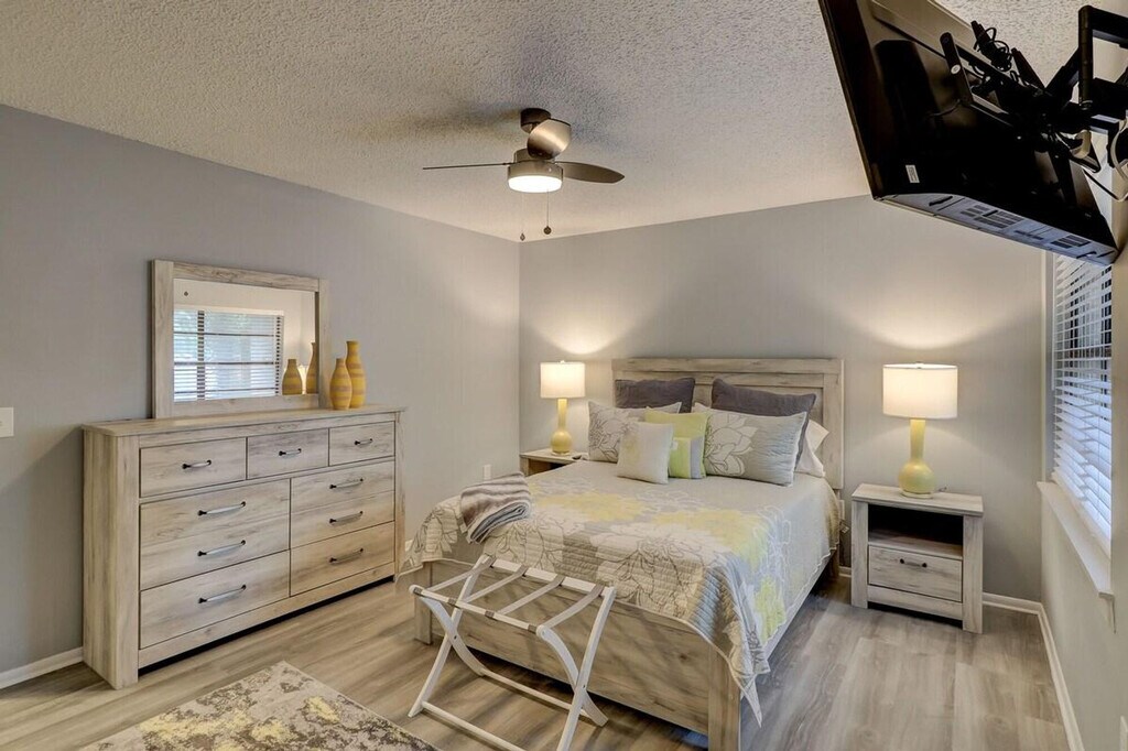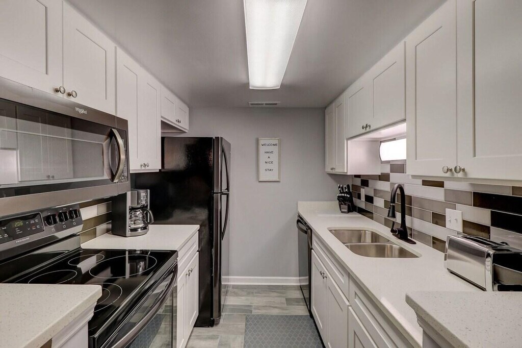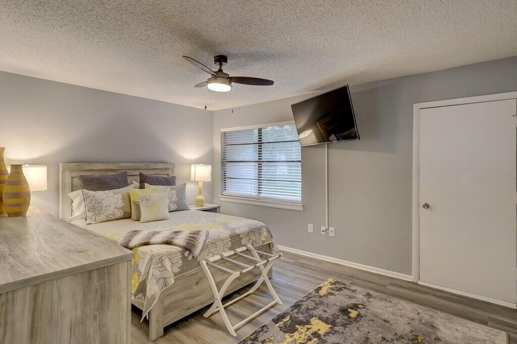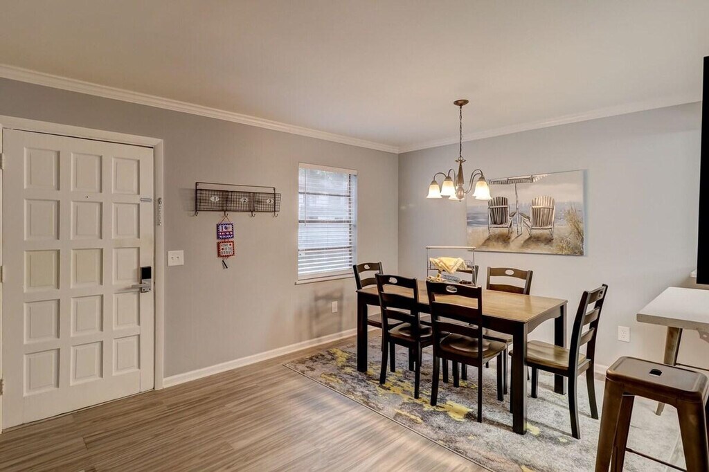 Feel at home in this newly renovated Hilton Head townhome featuring 2 bedrooms. This 1,200 sq ft townhouse is designed with comfort, style, and convenience in mind, perfect for families, couples, or groups of up to 6. The first floor offers an open-concept living and dining area with cozy seating. The modern kitchen is fully equipped with everything needed to prepare meals. A full laundry room is also available. The second floor features two beautifully appointed bedrooms, designed for comfort with fresh linens and ample storage. As a guest, you’ll also have access to the onsite pool. Pets are welcome with a fee of $25 per pet, per night. Each reservation includes parking for up to 2 cars. Located in the heart of Hilton Head Island, the Sea Turtle Marketplace is just next door with grocery stores, restaurants, and even a Dunkin’ Donuts. Burkes and Bradley Beach are only 5 minutes away. Parties are fully prohibited. Quiet time is from 10 PM to 6 AM. There is a $300 penalty for smoking on the property, and you will be dismissed from your rental without a refund. There is a $250 penalty if noise level or other obscene behavior requires a police callout, and you will also be dismissed from the property without a refund. There is a $100 Penalty for leaving trash outside the entrance to your property. Once your trash cans are full, please deposit trash in the large trash cans located at the building entrance. Please do not throw trash or paper towels in the toilet to avoid clogging. Damage to the interior of the property or common areas will result in a pro-rated auto-chargeback from your booking account. On checkout, please turn off the lights, the A/C unit, water, and gas/stove, and lock the door behind you. Penalties will automatically be withdrawn from your booking account. Please register your pets upon arrival at the office, located at the back of the complex near the swimming pool. If pets are not registered, the onsite manager may issue a fine. Pets must always wear a collar with a current rabies vaccination tag and be accompanied by a responsible individual when outside your unit. Please park in the space that matches your unit number. Parking passes will be provided on the kitchen table, and please be sure to return the passes to the kitchen table at checkout to avoid replacement fees. [SI]