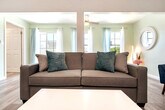 Feel at home in Emerald Escape, a peaceful getaway for up to 6 travelers in the heart of Destin. This first-floor 1-bedroom, 1-bath condo offers a peek-a-boo view of the Emerald waters out the back door. The living room welcomes you with a comfortable queen sleeper sofa and a cozy seating area. A smart TV is available for streaming your favorite services. The open-concept kitchen is equipped with full appliances, dishes, bakeware, pots and pans, silverware, utensils, a crockpot, a blender, and a traditional coffee maker and Keurig. A full-sized washer and dryer, iron, and ironing board are located in the laundry room. The bedroom features a king-size bed with an abundance of pillows, USB ports in each lamp, and a Roku-enabled TV. For extra guests, there are two twin trundle beds under the king-size bed. The bathroom offers a shower, toilet, a vanity sink area with a backlit mirror, and soft towels. Gulf Terrace Condominiums offers electric vehicle (EV) charging stations near the laundry facility and tennis courts. A high chair, pack and play, and plastic dinnerware, utensils, and cups are available for little travelers. All stays with house-trained pets must be disclosed at booking, as a $50 pet fee applies. A maximum of 2 dogs are allowed. ADA-recognized service animals are exempt from the pet fee, but Emotional Support Animals (ESAs) are not. Gulf Terrace Condominiums are centrally located in the heart of Destin, just minutes away from a variety of dining, shopping, and local hotspots. You’ll be less than a mile from June White Decker public beach access, Big Kahuna’s Water Park, Destin Dog Park, Morgan Sportscenter, Big Kahunas, and The Track Family Fun Parks. The complex offers the convenience of two entrances, with the side entrance providing easy access to a side street with a stoplight, perfect for avoiding traffic. This is a condo in a building with shared walls with other units, so there is a potential for noise. A 10 PM noise ordinance is in effect. Excessive noise, parties, illegal activity, or disturbances are not permitted at any time. Pets must be crated when unattended, and owners are responsible for cleaning up after them indoors and outdoors. Pets are not allowed on furniture. [SI]