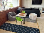 This charming home is located just a mile from Tamarack Beach, offering a peak ocean view and a tropical backyard with an organic fruit orchard, BBQ, and firepit. The property includes a 2-car garage and a washer/dryer. A connected granny flat with a bedroom, bathroom, and spacious living room is available for an additional cost, and renting both ensures a private yard. Inside, you'll find a king bed, two full beds, a twin bed, and a pullout couch. While the fireplace and pizza oven are not operational, the house comes equipped with a juicer to enjoy the delicious organic oranges from the orchard. Beach necessities such as bikes, coolers, beach chairs, and a wagon are provided for your convenience. For those traveling with babies, amenities include an Uppababy stroller with a toddler skateboard attachment, a pack-and-play, and a high chair. Electric car charging is available for an additional $15 per day. Situated just 7 minutes from Legoland, you can enjoy fireworks from the backyard on holidays. The neighborhood is family-friendly and offers easy access to local attractions, making it an ideal spot for a relaxing getaway. The washer/dryer is shared with the downstairs unit when rented. Only friendly dogs are allowed, and there is a $300 charge for any undisclosed guest or pet, and a $500 charge for smoking or having a party. The fireplaces inside are not to be used.
