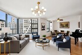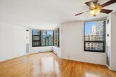 Lovely junior one bedroom in desirable Streeterville neighborhood located steps from the lakefront, beaches, bike paths, dog parks, city parks, Navy Pier, River Walk, restaurants, Michigan Ave., shopping, and much more! Inviting foyer entry has a large walk-in closet. Spacious living-dining room is great for relaxing at home and entertaining with friends and family. Renovated kitchen has cherry cabinets, granite countertops and stainless steel appliances with a breakfast bar. Gleaming newer oak hardwood floors throughout. Separate sleeping area has a huge walk-in closet. Bathroom has a whirlpool tub. Bay windows have nice views of the city skyline and a piece of the lakefront! Full amenity building with doorman, on-site management, indoor heated lap pool, whirlpool and sauna, state-of-the-art fitness room, 2 roof decks with stunning views of the lake, parks, city skyline and Navy Pier fireworks and the annual Air & Water Show. Parking space P4-155 included in the rent. Living Room