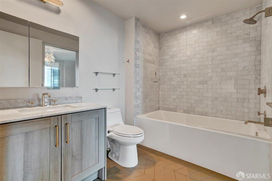 This highly desirable 1-bedroom at The Harrison offers a private, open layout with a spacious balcony connected directly to the bedroom, showcasing premium water and Bay Bridge views. The living, dining, and kitchen areas are lined with floor-to-ceiling windows, maximizing natural light and views. The kitchen features Carrara marble countertops, Waterworks brass fixtures, premium cabinetry, a Bertazzoni range, and a Sub-Zero refrigerator, with wide-plank Siberian Oak flooring throughout. The bedroom includes a walk-in closet and ample storage, while the bathroom is finished with Waterworks fittings and a tub. Located in the prestigious Harrison tower in Rincon Hill and masterfully designed by renowned interior designer Ken Fulk, this home offers access to world-class, 5-star amenities: 24/7 fully staffed lobby, The Pantry with daily coffee and pastries, A fully equipped fitness center, Heated outdoor pool and spa, The crown jewel: Uncle Harry's, the exclusive top-floor resident lounge featuring 100 linear feet of unobstructed Bay Bridge views. Just moments away from San Francisco's top dining, entertainment, and waterfront destinations. *Pictures of a lower unit with the same layout and views.*