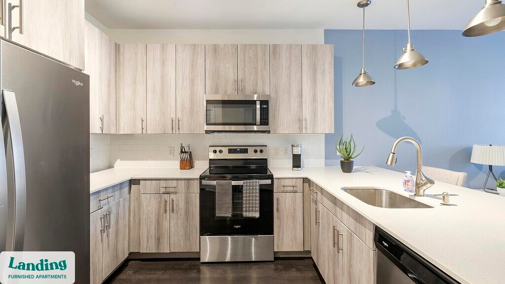 Landing offers flexible lease terms from weeks to months. Please always visit our website or contact us for the latest pricing & availability. Stay longer, save more: 6-Month Minimum base rent: starts at $1725/mo 12-Month Minimum base rent: starts at $1825/mo Landing offers flexible leases across a network of over 35,000 fully-furnished apartments throughout 375+ cities so you can rent on your terms, practically anywhere, and avoid the hassle of paying deposits or application fees. Visit to learn about all the benefits of a Landing membership, see our competitive up-to-date pricing, explore available apartments, take virtual tours, and make reservations online without jumping through traditional rental hoops. Landing's apartments at Broadway Chapter are designed for comfortable, easy living, with the ability to stay as long as you like. Experience living with Landing Every apartment is outfitted with all the modern essentials including: custom-designed furnishings, a fully-equipped kitchen with deluxe stainless steel appliances, a gourmet coffee maker, premium linens, Smart TVs, and incredibly fast, reliable internet for working from home. When you live with Landing, you'll enjoy a hassle-free experience with the added benefit of 24/7 access to our dedicated member experience team. Some of the nitty-gritty: a background check and proof of income are required; we're completely smoke-free; bundled utility packages and pricing vary based on length of stay; pet-friendly options available; listed price reflects a 12-month minimum stay.