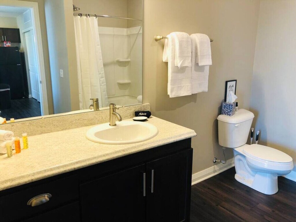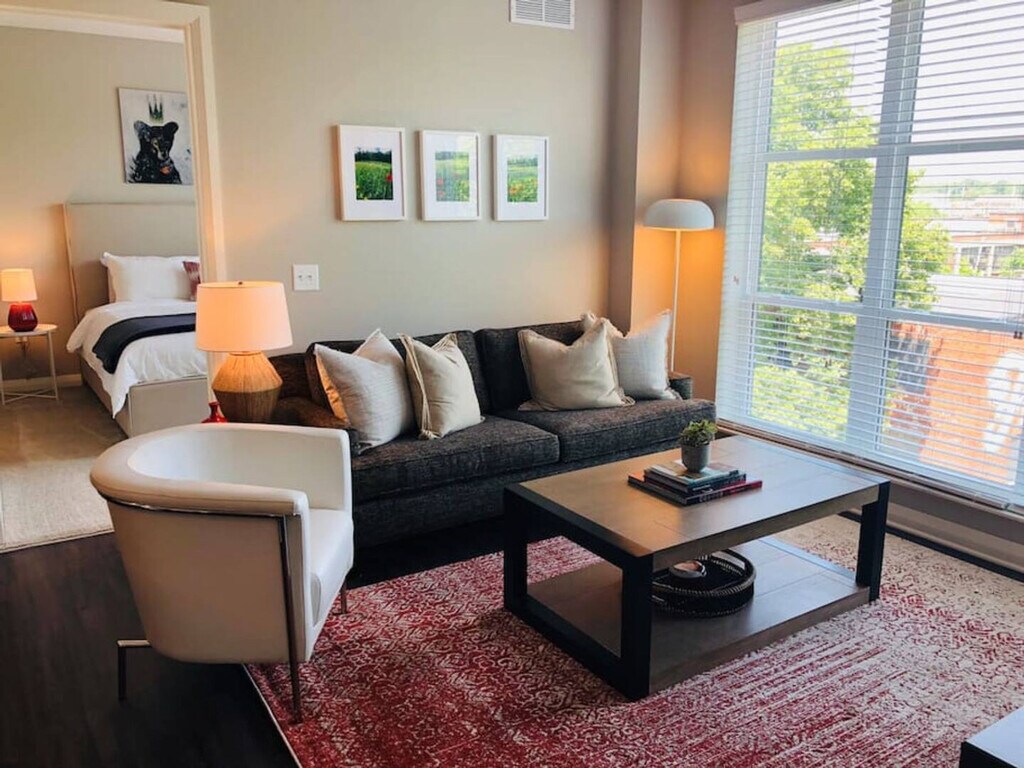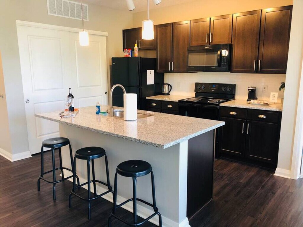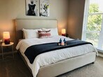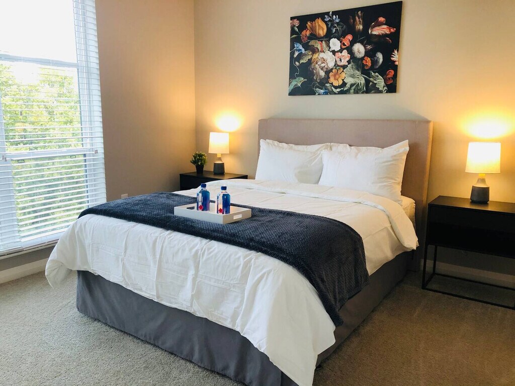 Stay at our beautiful downtown apartment in the heart of Columbus! This 2-bedroom apartment features a king bed and a queen bed, along with 2 full baths. Enjoy fast WiFi, free garage parking, a 50" smart TV with Roku and DirecTV, and an in-unit washer and dryer. The building includes an elevator for your convenience. What guests love about this apartment is the abundance of natural light from large windows, a great floor plan for roommates with each bedroom having a walk-in closet and bathroom, and modern furniture and decor. The apartment is spotlessly clean, maintained by our highly-trained crew, and offers self-check-in via a secure door keypad. Enjoy access to the fitness center and an unlimited parking pass for the parking garage. Street parking is also available if needed. This apartment is located in a fast-growing area of downtown with lots of exciting shops and restaurants opening all the time. It's peacefully tucked in a quieter area away from the bar scenes of The Short North while still being only 5-10 minutes drive away. Nestled along the river, it's perfect for walks or bike rides with the beautiful Scioto Mile trail running right behind the community. You'll love being just a few steps away from Ray Ray's BBQ, Brewdog, One Line Coffee, Strongwater, Yellow Brick gourmet pizza, and many other favorites. It's easy to get anywhere downtown by car, bicycle, scooter, Uber, Lyft, walking, or bus. This apartment is located in a 100% smoke-free community, so no smoking of any kind is allowed anywhere, including the balcony, breezeways, and parking lots. Pets have never been permitted in this apartment, making it ideal for guests with allergies or those who prefer a pet-free environment. Check-in is easy with ID verification required before arrival. After booking, you'll receive a link to upload a photo of your ID and take a selfie for a quick background check, which takes about 2 minutes.
