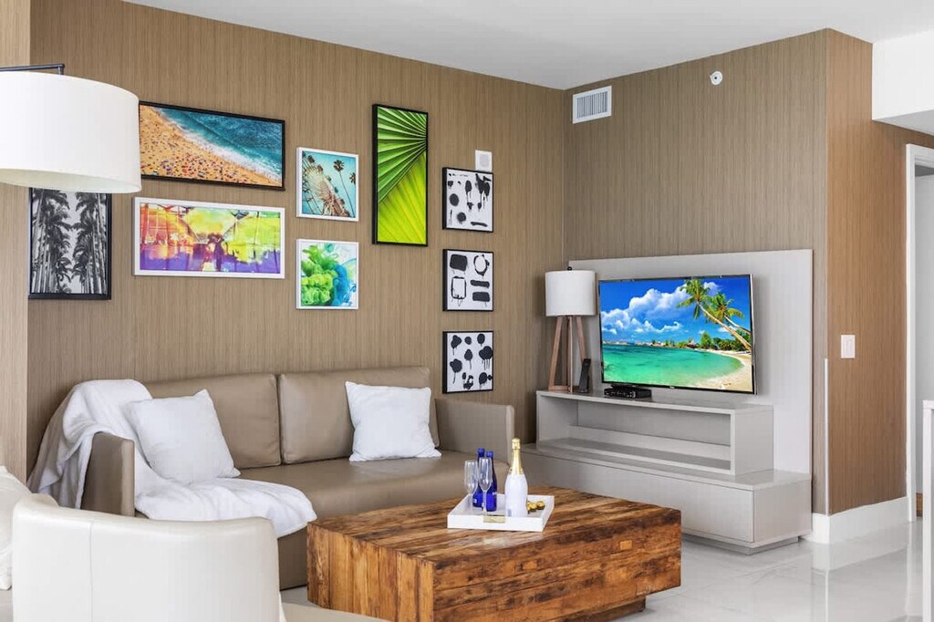 The advertised rate of $7,766/month is the lowest available price, based on a 30 day(s) stay with a move-in date of August 2, 2026. Rates vary depending on the duration of stay, season, and other parameters. For exact pricing and additional pricing components, please visit our website and enter your desired move-in and move-out dates. The rate is applicable when billed upfront; it can be higher if billed in multiple payments. Feel at home in this luxurious 2-bedroom beachfront apartment in Hollywood Beach, offering 1,164ft² / 108m² of upscale living space with breathtaking ocean views. This beautifully decorated apartment ensures a premium experience with fresh linens and towels provided. Enjoy access to a beachfront balcony with a fire pit, fast Wi-Fi, and full access to 5-star resort amenities. Two single double-thick air mattresses can be provided upon request. The apartment is located in The Lyfe Resort in a centrally located area between Fort Lauderdale and Miami Beach. Groceries, restaurants, and malls are just 1 mile away, Fort Lauderdale Airport (FLL) is 9 miles away, and Miami Beach is 20 miles away. Visitors are allowed. [SI]