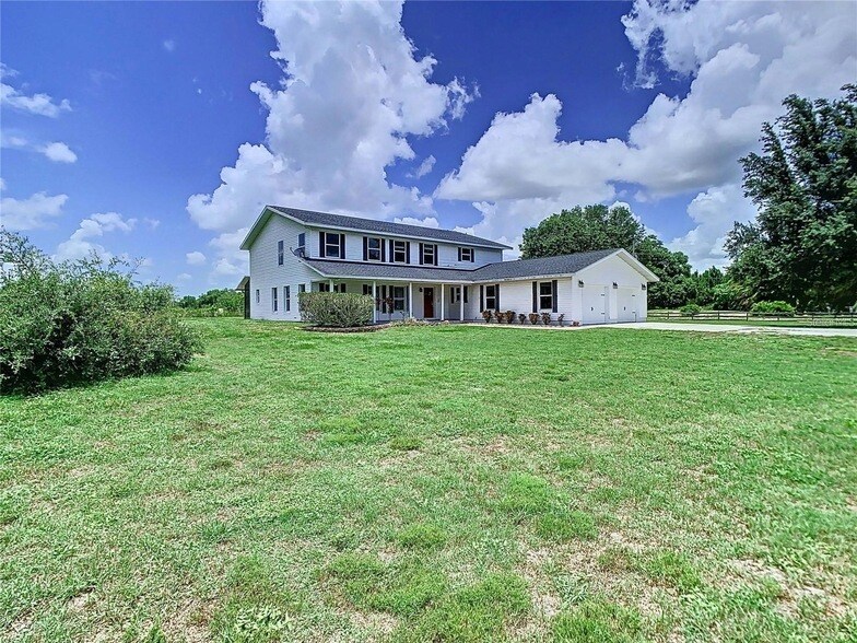 Your Private Florida Oasis Awaits! Indulge in the true Florida lifestyle with this exquisitely renovated 4-bedroom, 3-bath, 2-car garage home. Nestled on an expansive, fully fenced acreage lot in a desirable rural setting, this property promises privacy and tranquility.Inside, you'll be greeted by gorgeous real wood floors, an updated kitchen designed for the home chef featuring stainless steel appliances and gleaming granite countertops, and abundant storage. High ceilings create an airy atmosphere, complementing the spacious great room with its convenient eat-in kitchen area. This home offers remarkable flexibility with an owner's suite on the first floor and a primary suite upstairs, each boasting its own private ensuite. French doors beckon you to the incredible screened-in pool area (being resurfaced for you!) and expansive outdoor living space perfect for year-round enjoyment. Live your piece of paradise! Book your showing today