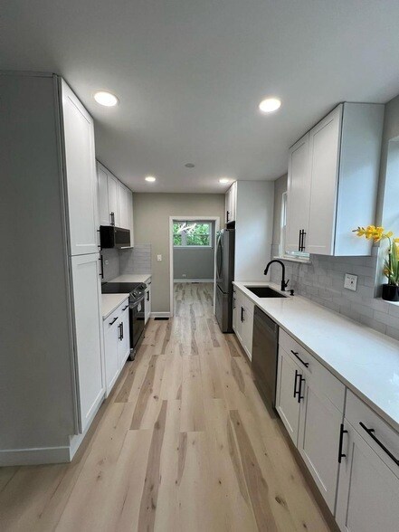 BEAUTIFUL fully rehabbed split level with a sub basement on a double lot. Walk into this airy, serene house with light floors & neutral colors throughout with a contemporary feel. SPACIOUS kitchen with shaker style cabinets & quartz countertops along with stainless steel appliances perfect for cooking dinners or just entertaining guests. Lower level is cozy with plush carpeting & a fireplace for the snowy winters. CUTE reading nook to dress up & make it your favorite part of the home. The lower level has a bedroom & an office. Lots of space for storage. PERFECT location close to shopping & highway.