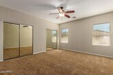 Beautifully designed 3-bedroom, 2-bathroom home in Maricopa today! As you enter, you're immediately greeted by the inviting open-concept floor plan, with ceiling fans throughout and a mix of tile and plush carpet that adds warmth and style. Natural light pours in, making the space feel even larger and more welcoming.The spacious family room and great room offer the perfect space for entertaining, with plenty of room for both relaxation and gatherings. The kitchen is a featuring custom cabinetry, sleek black appliances, and a central island with a breakfast bar.The master suite is a private retreat, complete with two closets and an ensuite bathroom featuring a separate shower and tub, along with double sinks for added convenience.Step outside to the beautifully finish backyard .