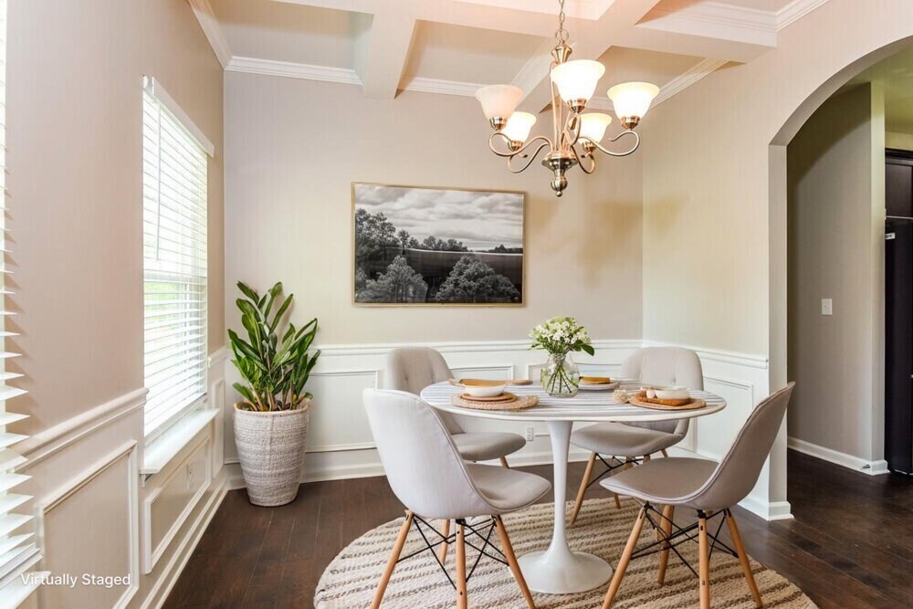 Please note, our homes are available on a first-come, first-serve basis and are not reserved until the lease is signed by all applicants and security deposits are collected. This home features Progress Smart Home - Progress Residential's smart home app, which allows you to control the home securely from any of your devices. Learn more at Want to tour on your own? Click the “Self Tour” button on this home’s listing or call to register for a self-guided showing at a time that works best for you. Some images have been virtually staged to help showcase the potential of spaces in the home. The furnishings shown are for illustrative purposes only and are not included in the home. Located on a tranquil street between Legion Lake and Crooked Creek, this four-bedroom rental home with 2.5 bathrooms in Douglasville, GA has an immaculate front lawn with a covered front porch that's perfect for relaxing in the shade. Featuring a door to the backyard, the living room has a gorgeous stone fireplace, hardwood floors, and a wooden ceiling fan with a dome light. The dining room, which has a large chandelier hanging from the ceiling in the center and a pair of windows offering a spectacular view of the yard, sits next to the kitchen through two arched entryways. You'll be amazed at the main bedroom's size and the premium cabinets, elegant lighting, and walk-in shower in the attached bathroom.
