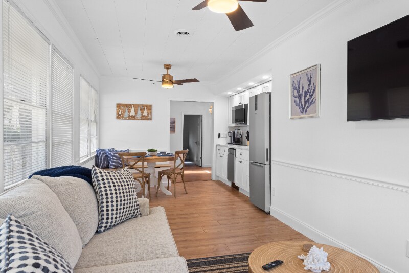 Property Id: 1594970 Coastal Winter Retreat — Furnished 2BR Cottage Steps from the Beach Escape to this charming 2-bedroom, 1-bath furnished beach cottage, just 1,000 feet from the ocean in the heart of Myrtle Beach. Recently remodeled, it features a fresh, modern design, open living area, and a fully equipped kitchen with contemporary appliances. Both bedrooms are cozy and inviting, perfect for relaxing after a day by the shore. Pet-friendly and located in a quiet residential neighborhood, you'll enjoy peace and privacy while staying close to top attractions, restaurants, and shops. Enjoy access to a shared pool and the flexibility of month-to-month winter rentals. Ideal for snowbirds, remote workers, or anyone seeking a comfortable coastal escape this season.