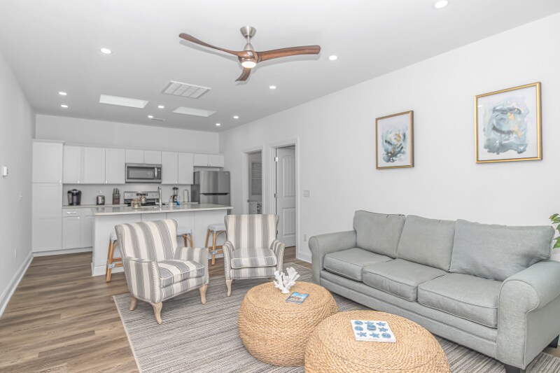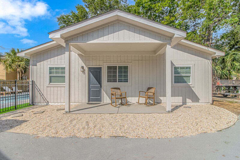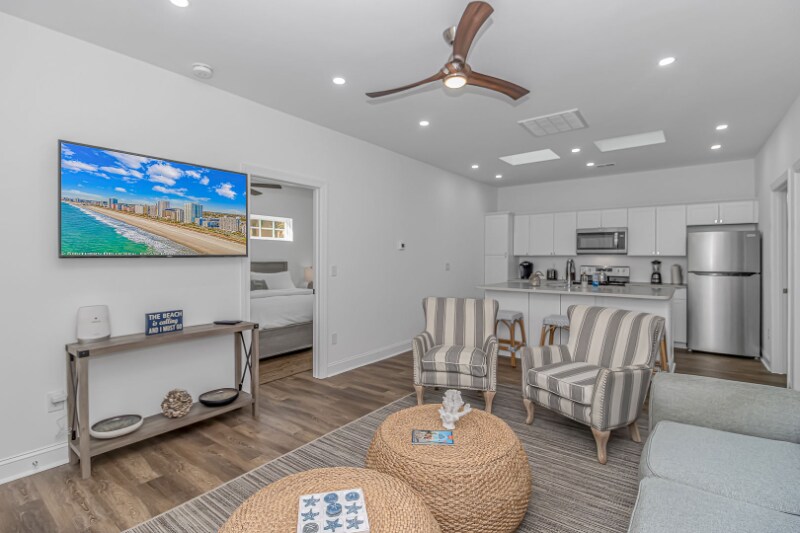 Property Id: 1594111 Located just 1000ft from the water, the heart of the cottage is the open-concept living room and kitchen area, designed for gatherings and shared moments. The fully stocked kitchen boasts modern appliances, cookware, and utensils, making it easy to whip up delicious meals. The living room invites you to unwind on cozy furnishings while watching your favorite shows on the smart TV. The master bedroom is your private sanctuary, featuring a plush king-size bed draped in crisp linens. Adjacent to the sleeping area is an appointed work space, complete with a desk and comfortable chair, ideal for catching up on emails. The en-suite bathroom offers convenience and privacy, ensuring you have everything you need for a comfortable stay. The second bedroom is perfect for family or friends, with two full-size beds adorned with coastal-themed bedding. A smart TV allows for entertainment and relaxation after a day of sun and sand. Pet Friendly All Utilities Included