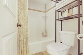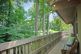 2 bed, 1 bath 'Holiday' model in Abbey Springs, set in a wooded 2nd-floor location and ready for summer fun! Vaulted great room opens to kitchen with 5-seat breakfast bar, maple cabinets, granite tops & SS appliances. Hardwood floors, custom trim, and woodwork throughout. French doors lead to primary bedroom with king bed, built-ins, balcony access & en suite with separate tub/toilet area. 2nd bedroom has full-size bunk beds and walk-in closet with dryer.