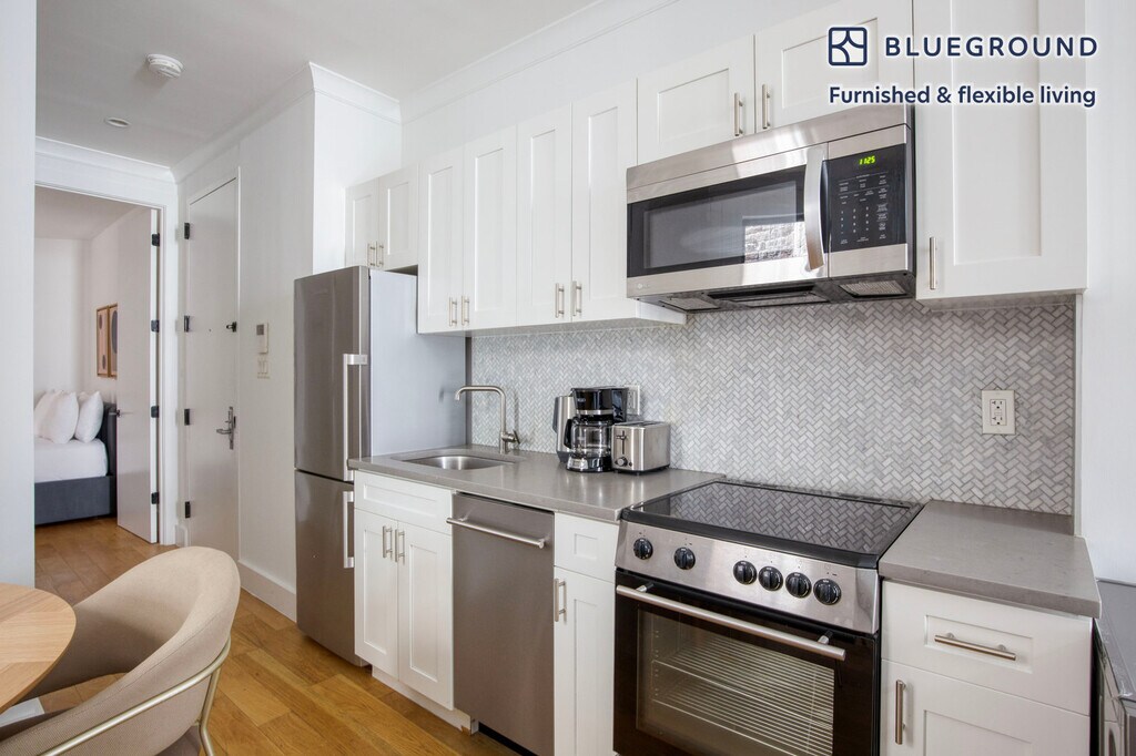 Feel at home wherever you choose to live with Blueground. You’ll love this cozy Lenox Hill furnished two bedroom apartment with its modern decor, fully equipped kitchen, and roomy living room. Ideally located, you’re close to all the best that New York has to offer! (ID #NYC1518) The advertised rate of $4,390/month is the lowest available price, based on a 11 month(s) and 29 day(s) stay with a move-in date of February 1, 2026. Rates vary depending on the duration of stay, season, and other parameters. For exact pricing and additional pricing components, please visit our website and enter your desired move-in and move-out dates. The rate is applicable when billed upfront; it can be higher if billed in multiple payments. Brokers are welcome to reach out. Were you looking for an unfurnished lease? Try Blueground instead and upgrade from unfurnished to furnished living: - Furnished at rates comparable to unfurnished - No setup or furniture costs - save thousands - Move-in ready - save time, just bring your suitcase Designed with you in mind Thoughtfully designed with bespoke finishes, modern furnishings, and a fully equipped kitchen, you’ll enjoy that “I’m home” feeling with this Blueground apartment. Whether you’re lounging in your bright living room streaming the latest and greatest entertainment on the smart TV or premium wireless speaker, or getting some well-earned rest on the superior quality mattress with luxury linens, you’ll fall in love with everything this Lenox Hill apartment has to offer. This apartment also offers in-apartment laundry. Sleeping arrangements Queen Bed, 63in/160cm Queen Bed, 63in/160cm Amenities Building amenities unique to this two bedroom apartment include an on-site: - Dryer - Washing machine - Pets allowed Arrival and ongoing support The entire apartment is yours to enjoy! Throughout your stay, you’ll have access to our Client Experience team through the Blueground App. You can schedule additional cleanings, submit maintenance requests, and view our neighborhood recommendations with just a few taps. We’ll share all details upon confirmation of your stay. Ideally Located This furnished property is situated in Lenox Hill, on the Upper East Side. Stretching from Central Park to the East River, the neighborhood has seen a rapid increase in locals wanting to call it home. Lenox Hill is full of noted cultural institutions such as the Frick Collection, Asia Society Museum and the Park Avenue Armory. Hunter College and Rockefeller University are also in the area, attracting hordes of students. Other things to note This Blueground apartment has flexible lease options, allowing you to book it for one month, a year, or more. Pets are welcome, though weight limits and breed restrictions apply and may incur fees. Please keep in mind that this is a walk up building. Brokes CYOF. We take great pride in ensuring every photo displayed is shot in our own units with our actual furnishings. That said, we regularly refresh our decor and furniture arrangement, which may differ from what’s pictured.