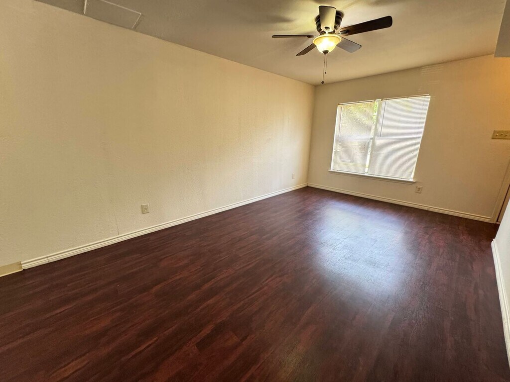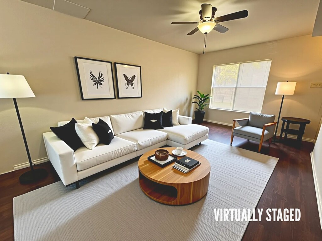 View 360 Virtual Tour: Move In Special: $100 off the first month's rent with a 1-year lease Two bedroom one half bath townhome duplex featuring vinyl flooring throughout and bright white cabinets for a clean, modern look. Come by our office to tour this beautiful home today! Disclaimer: The furnishings or enhancements shown are AI-generated and intended for inspiration only. They may not reflect the actual scale, condition, or current features of the property.