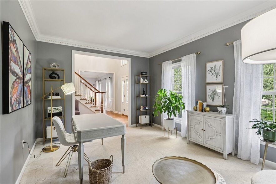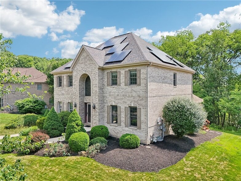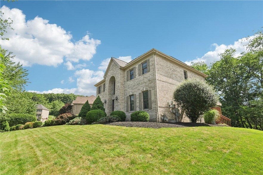 Welcome to 403 Worth Court, an exquisite custom brick home nestled in the desirable Ehrman Farms neighborhood in Cranberry Township. This stunning residence features four spacious bedrooms and four bathrooms (two full, two half), providing ample space for family and guests. Off the foyer, you will find a formal dining room and a formal living room, perfect for entertaining. The grand great room boasts vaulted ceilings and a cozy gas fireplace. The gourmet kitchen features elegant granite countertops and opens up to a private deck overlooking a serene, tree-lined backyard. An added bonus is a beautiful office space with built-ins, ideal for remote work or study. The extravagant owner suite bathroom includes heated floors and luxury upgrades galore, enhancing the home's allure. His and hers separate closets offer ample storage. With a three-car garage and a finished basement, this residence perfectly balances luxury and convenience. Easy access to local amenities and major roadways.