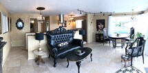 Experience the charm of a beachfront Italian-style villa overlooking Puget Sound, offering breathtaking ocean views. This elegant two-floor villa features rich organic elements of stone, steel, and wood, with two bedrooms on separate floors. The downstairs bedroom includes a king-size bed, a full sandstone bath, and a gourmet kitchen, while the upstairs penthouse unit offers a queen bed and a luxurious marble bathroom with a spa. The villa provides unobstructed views of Weather Watch Park and the Olympic Mountains, with a private entrance for guests. The elegant living room boasts gleaming hardwood floors, a stunning stone electric fireplace, European chandeliers, and a grand piano. The gourmet kitchen is a chef’s dream with granite counters, a stainless steel Viking range and oven, a full-size Viking double-door refrigerator, and a Viking dishwasher, fully equipped for preparing light meals. The adjoining dining room features a table with velvet chairs, a credenza, European chandeliers, and a stereo and record player. A TV room off the kitchen and a seating area offer water views of Puget Sound. Guests can order a charcuterie box from Charcuterie by Annalise for $75 or $65 for a vegetarian option, to be ready upon arrival. Free parking is available on the street in front of the house or the garage. Located across from the renowned La Rustica Italian restaurant, guests can enjoy a meal or book a massage at Alki Massage and Wellness Center nearby. The villa's location offers opportunities for beach strolls, kayaking, canoeing, and enjoying fresh seafood at local restaurants along Alki Beach. The area is vibrant with marine traffic, from sailboats to ocean-going vessels, and wildlife sightings, including harbor seals, sea otters, eagles, and orca whales. The property is not suitable for children due to its waterfront location. The villa is a no-smoking, no-pets, and no-parties property, with penalties for violations. Check-in is at 5 pm, and check-out is at 10 am, with late check-out available for $10 per hour with 24 hours' notice. The villa is located in a city area with potential noise from nearby restaurants and the beach. The unit does not have individual heat or cooling control, but oil heaters and fans are provided for comfort. Exterior cameras monitor all entry points for safety and security. The villa includes a main floor office equipped for remote work, featuring a desk, chairs, and ample built-in storage, perfect for Zoom calls. The villa strives to be hypoallergenic, using natural cleaning products and essential oils. Guests must provide 30 days' notice for accommodations regarding service animals to ensure safety from these products. Registration Number: STR-OPLI-19-003036 [SI]