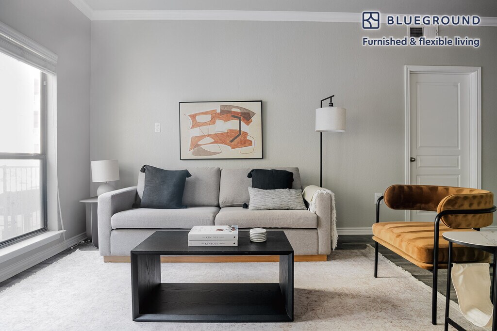 Show up and start living from day one in Austin with this lovely two bedroom Blueground apartment. You’ll love coming home to this thoughtfully furnished, beautifully designed, and fully equipped Downtown Austin home. (ID #ATX287) The advertised rate of $1,880/month is the lowest available price, based on a 2 month(s) and 10 day(s) stay with a move-in date of October 25, 2025. If you’re looking for a 1-year stay, the rate is $2,950/month. Rates vary depending on the duration of stay, season, and other parameters. For exact pricing and additional pricing components, please visit our website and enter your desired move-in and move-out dates. The rate is applicable when billed upfront; it can be higher if billed in multiple payments. Brokers are welcome to reach out. Were you looking for an unfurnished lease? Try Blueground instead and upgrade from unfurnished to furnished living: - Furnished at rates comparable to unfurnished - No setup or furniture costs - save thousands - Move-in ready - save time, just bring your suitcase Designed with you in mind As with any Blueground apartment, you’ll find a thoughtfully designed space complete with beautiful furniture and a fully equipped kitchen in this two bedroom property. And, thanks to our superior quality mattresses, luxury linens, and towels, you can relax knowing you’ll always feel comfortably at home. When you’re ready for some fun, you can take in the Austin vibes or bring the entertainment to you with the premium wireless speaker or smart TV. This apartment also offers in-apartment laundry. Sleeping arrangements Queen Bed, 63in/160cm Queen Bed, 63in/160cm Amenities Building amenities unique to this two bedroom apartment include an on-site: - BBQ Area - Dryer - Elevator - Swimming pool - Washing machine - Parking - Pets allowed Arrival and ongoing support The entire apartment is yours to enjoy! Throughout your stay, you’ll have access to our Client Experience team through the Blueground App. You can schedule additional cleanings, submit maintenance requests, and view our neighborhood recommendations with just a few taps. We’ll share all details upon confirmation of your stay. Other things to note Building amenities may have an extra cost. This Blueground apartment has flexible lease options, allowing you to book it for one month, a year, or more. Pets are welcome, though weight limits and breed restrictions apply and may incur fees. Parking is offered based on availability and is subject to a fee. We take great pride in ensuring every photo displayed is shot in our own units with our actual furnishings. That said, we regularly refresh our decor and furniture arrangement, which may differ from what’s pictured. Also note - Noise from the nearby nightlife can sometimes be heard late at night