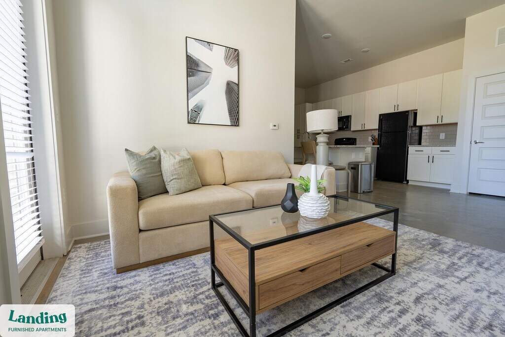 Landing offers flexible lease terms from weeks to months. Please always visit our website or contact us for the latest pricing & availability. Stay longer, save more: 6-Month Minimum base rent: starts at $2400/mo 12-Month Minimum base rent: starts at $2131/mo Landing offers flexible leases across a network of over 35,000 fully-furnished apartments throughout 375+ cities so you can rent on your terms, practically anywhere, and avoid the hassle of paying deposits or application fees. Visit to learn about all the benefits of a Landing membership, see our competitive up-to-date pricing, explore available apartments, take virtual tours, and make reservations online without jumping through traditional rental hoops. Landing's apartments at The Henry are designed for comfortable, easy living, with the ability to stay as long as you like. Experience living with Landing Every apartment is outfitted with all the modern essentials including: custom-designed furnishings, a fully-equipped kitchen with deluxe stainless steel appliances, a gourmet coffee maker, premium linens, Smart TVs, and incredibly fast, reliable internet for working from home. When you live with Landing, you'll enjoy a hassle-free experience with the added benefit of 24/7 access to our dedicated member experience team. Some of the nitty-gritty: a background check and proof of income are required; we're completely smoke-free; bundled utility packages and pricing vary based on length of stay; pet-friendly options available; listed price reflects a 12-month minimum stay.