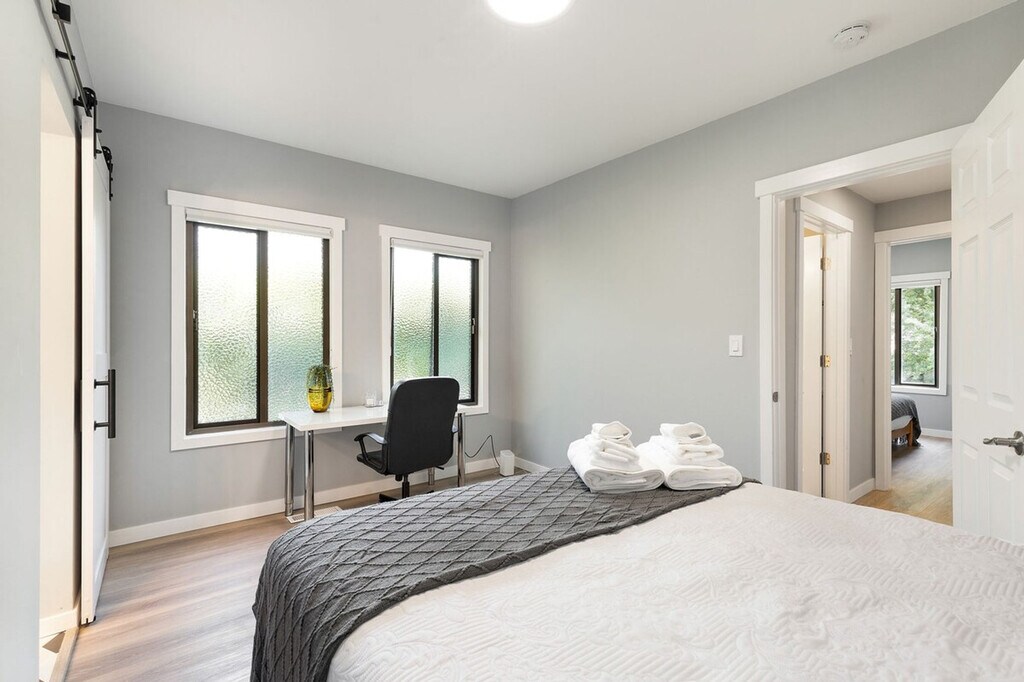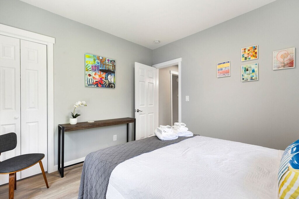 Feel at home in this remodeled 2-bedroom suite located in a quiet area near Lake Union. This upper-level unit spans two levels and offers 2 bedrooms, 2 bathrooms, a front yard, and approximately 1200 sqft of living space. Enjoy easy access to UW and downtown, with steps leading to 45th shops, coffee spots, restaurants, and Gas Works Park. The laundry is shared, and the backyard is reserved for lower-level guests. Experience the best of Seattle's history, city views, and vibrant atmosphere with a stay in this fully remodeled home. The main floor features a living room, dining room, kitchen, 2 bedrooms with queen beds, and 2 bathrooms. The kitchen is equipped with stainless steel appliances and is fully stocked with cookware, silverware, servingware, spices, coffee, and tea for all your cooking needs. The second floor offers a finished attic with extra spaces for activities, though it lacks heating or cooling. All beds are outfitted with high-quality mattresses and linens. Plenty of parking is available on the driveway with electric charging, and there are also plenty of free street parking spots. Well-trained pets are welcome with a fee of $50 per pet per night. Please refrain from allowing pets on furniture or linens, and do not leave them unattended. Please bring poop bags and pick up after your pets. Nestled between the University District, Fremont, and Wallingford, this area is a vibrant mix of academic energy, artistic flair, and residential calm. It's known for its eclectic mix of shops, cafes, and restaurants, catering to a diverse community. The region boasts easy access to the Burke-Gilman Trail, Gas Works Park, and Lake Union, offering stunning city and water views. Ideal for those who appreciate a lively yet laid-back neighborhood with cultural and recreational richness. Very walkable with excellent transit options, multiple bus routes, or a quick drive/uber to downtown. The main floor, top floor, front yard, and outdoor patio are included in this rental. The laundry room and backyard are shared with guests on the lower floor. Guest access is granted via a smart lock with a private entrance. Strictly no parties or events, quiet hours between 10 pm and 8 am, and no smoking or vaping of any kind anywhere on the property, including outdoor areas. A $500 fine applies per violation. Registration Number: STR-OPLI-24-000338 [SI]
