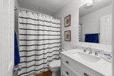 Property Id: 1595005 Welcome to your stunning beach retreat in Myrtle Beach! This newly remodeled 4-bedroom, 3-bathroom beach home is a single-story paradise just 1000 ft from the ocean, offering the perfect blend of comfort and convenience. The space As you enter, you'll be greeted by a spacious and airy open-concept layout that seamlessly connects the kitchen, living, and dining areas. The fully stocked kitchen is a chef's dream, featuring modern appliances, sleek countertops, and ample storage space. Gather around the dining table for family meals or relax in the cozy living room, perfect for unwinding after a day at the beach. The highlight of this home is the two master suites, each with its own private bathroom, providing ultimate privacy and luxury for guests. Bedroom 2 features two double beds, ideal for accommodating additional guests or children, while bedroom 3 also offers two double beds for a comfortable night's sleep.