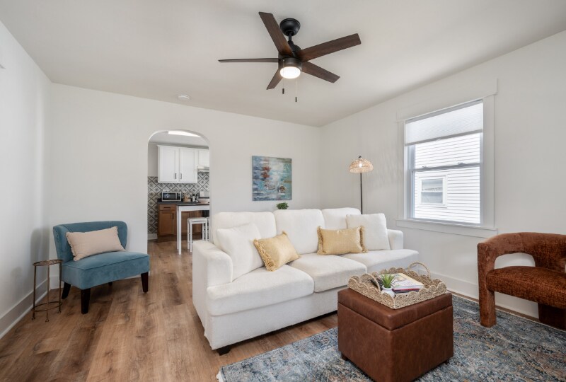 Property Id: 2184554 This beautifully renovated one bedroom, one bath apartment offers, comfort, style, and convenience. Inside youll find all new flooring throughout, giving the place, a fresh and modern feel. The fully equipped kitchen features all new appliances, sleek modern cabinets, with ample counter space for cooking and entertaining. The bedroom has plenty of natural light and the bath has been refreshed with modern fixtures. The outside has also been renovated with a lovely covered porch complete with a ceiling fan, comfortable rockers, and table set.