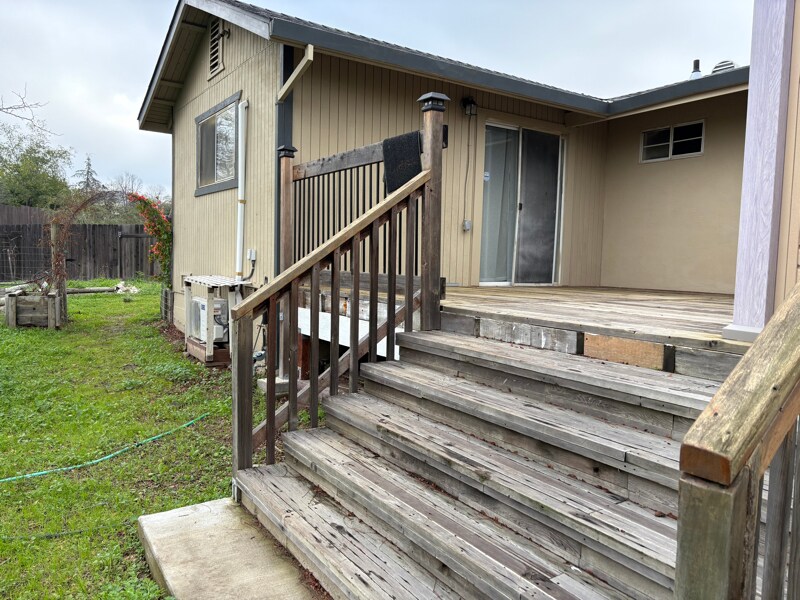 Property Id: 2388867 Beautiful stucco home on 1/4 acre screened in patio on large deck. Master bedroom has 2 showers in bathroom.the heat/cool systems are mini split so you have control of your temp in your room There is also a whole house fan for summer to cool house .house is powered by solar so we want to make sure we don’t get a utility bill from PG&E. Many producing fruit trees in backyard to enjoy.i will be replacing the pellet stove before next winter.