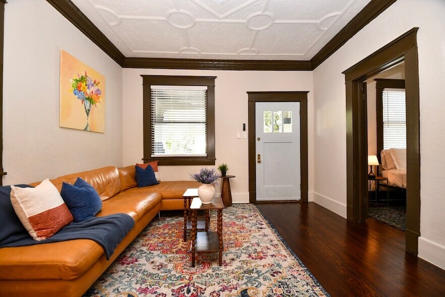 AVAILABLE STARTING OCT 25TH UNTIL DECEMBER 10TH ONLY. FULLY FURNISHED - WITH UTILITIES AND FIBER INTERNET INCLUDED! Amazing street in the Greater Heights! Enjoy this 110 year old home that was recently remodeled. Historic charm with original trim and ceiling accents, plus an original faux fireplace with new tile. Includes a new Fridge, new washer/dryer, and new dishwasher. Newly remodeled with all new paint, newly sanded and stained wood flooring, new kitchen cabinets, new bathroom remodeling and tub, and new central HVAC. Fully fenced in with 2 new wooden fences on each side.. Gorgeous quaint covered front patio with a fan and a large open rear deck with patio lights. Outdoor shed for storage. Best of all, it s a picturesque and walkable street with mature trees and amazing looking neighbors, plus alley access for more privacy. All bedrooms come with 2 inch blinds. Comes with a leather couch, rugs, 1 queen bed, 2 twin beds, dining table with 4 chairs, and 3 smart TV's.