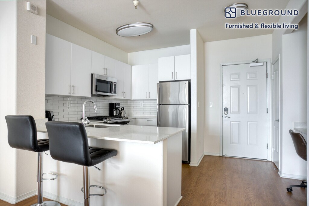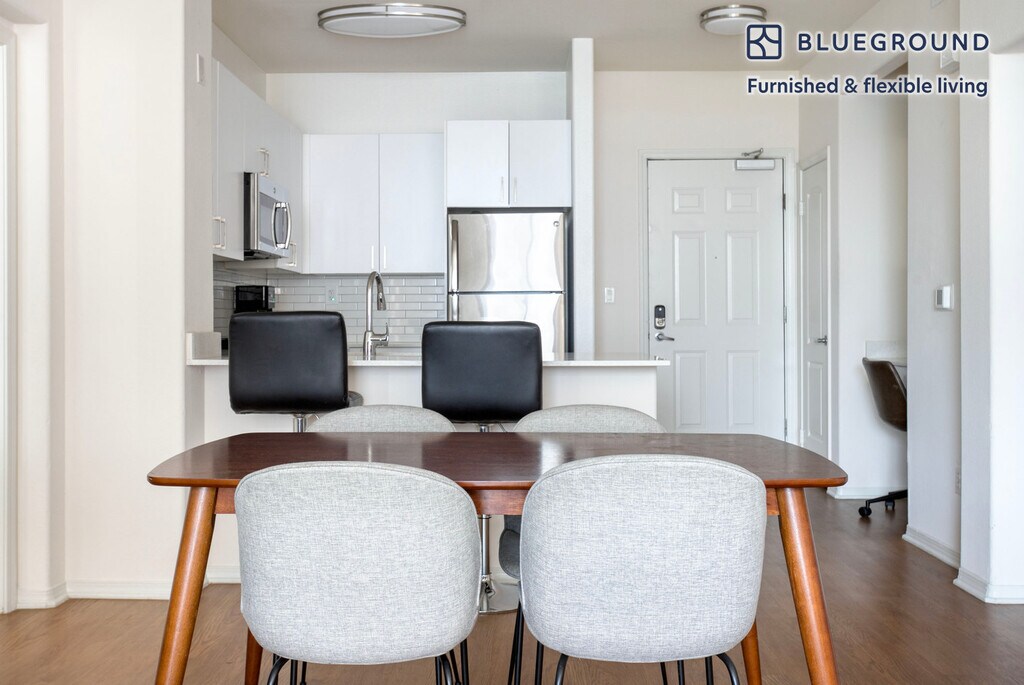 Discover the best of Los Angeles, with this two bedroom apartment in Del Rey. It’ll be easy to simply show up and start living in this furnished apartment with its fully equipped kitchen, living room, and our dedicated, on-the-ground support. (ID #LAX1139) The advertised rate of $3,580/month is the lowest available price, based on a 1 month(s) and 29 day(s) stay with a move-in date of December 8, 2025. If you’re looking for a 1-year stay, the rate is $3,970/month. Rates vary depending on the duration of stay, season, and other parameters. For exact pricing and additional pricing components, please visit our website and enter your desired move-in and move-out dates. The rate is applicable when billed upfront; it can be higher if billed in multiple payments. Brokers are welcome to reach out. Were you looking for an unfurnished lease? Try Blueground instead and upgrade from unfurnished to furnished living: - Furnished at rates comparable to unfurnished - No setup or furniture costs - save thousands - Move-in ready - save time, just bring your suitcase Designed with you in mind Thoughtfully designed with bespoke finishes, modern furnishings, and a fully equipped kitchen, you’ll enjoy that “I’m home” feeling with this Blueground apartment. Whether you’re lounging in your charming living room streaming the latest and greatest entertainment on the smart TV or premium wireless speaker, or getting some well-earned rest on the superior quality mattress with luxury linens, you’ll fall in love with everything this Del Rey apartment has to offer. This apartment also offers in-apartment laundry. Sleeping arrangements King Bed, 70.8in/180cm Queen Bed, 63in/160cm Amenities Building amenities unique to this two bedroom apartment include an on-site: - BBQ Area - Dryer - Elevator - Swimming pool - Washing machine - Parking - Pets allowed Arrival and ongoing support The entire apartment is yours to enjoy! Throughout your stay, you’ll have access to our Client Experience team through the Blueground App. You can schedule additional cleanings, submit maintenance requests, and view our neighborhood recommendations with just a few taps. We’ll share all details upon confirmation of your stay. Other things to note Building amenities may have an extra cost. This Blueground apartment has flexible lease options, allowing you to book it for one month, a year, or more. Pets are welcome, though weight limits and breed restrictions apply and may incur fees. Parking is offered based on availability and is subject to a fee. We take great pride in ensuring every photo displayed is shot in our own units with our actual furnishings. That said, we regularly refresh our decor and furniture arrangement, which may differ from what’s pictured. [SI]