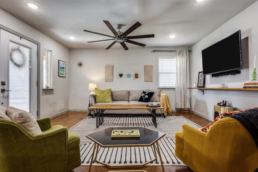 This beautifully designed 3-bedroom, 3-bathroom home is just minutes from Lake Texoma and the charm of downtown Denison, offering the perfect balance of location and style. Step inside to a bright, open floor plan with durable stained concrete floors, ideal for easy maintenance and everyday living. The spacious kitchen features a granite island, perfect for hosting or just making weeknight meals feel a little more special. It flows effortlessly into the dining area, cozy living space, and even a quiet reading nook. You ll love the oversized primary suite with direct access to the backyard patio, plus a luxurious bathroom complete with a soaking tub and separate decorative-tile shower. The second bedroom also includes a private ensuite bath, making it perfect for guests, roommates, or future little ones. A third full bathroom offers a stylish stand-up shower and is easily accessible from the main living area. Built with energy efficiency in mind, this home includes low-E windows and a tankless water heater, helping you save on utility bills and keeping homeowner s insurance more affordable compared to older homes. Bonus: There s a finished, air-conditioned attic space, ideal for storage or even a fun loft area, not included in the square footage.