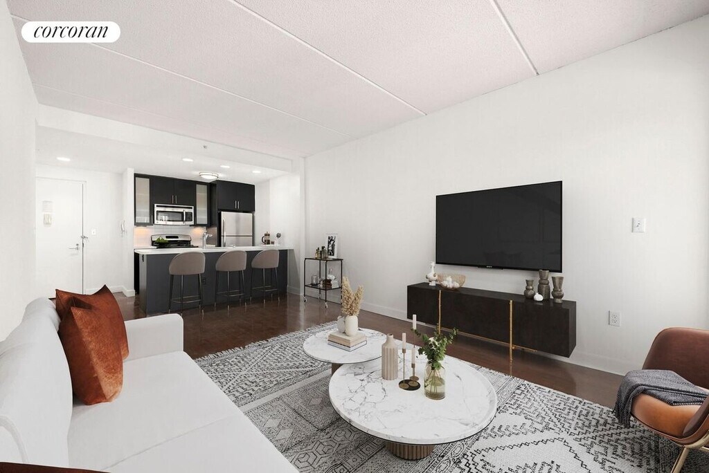 Welcome home to residence 2G at Packard Square! Modern and huge 1BR with a Private Balcony. Just one stop to Manhattan! Rare find, pay the amortized rent per month.Excellent layout of the expansive living room allows you to furnish with style and ease. Spacious king bedroom equipped with deep closets and additional space for a desk/dresser.Open style kitchen makes entertaining a pleasure. It boasts an island, Caeseerstone countertops with ample space, custom espresso finish cabinetry and GE stainless steel appliances with a dishwasher. Spacious bathroom with contemporary features throughout. Enjoy a wide array of amenities with no amenity fees.Apartment features:-Exclusive private balcony with city views-Modern finishes throughout-Large living room and bedroom-Open kitchen with island-Hansgrohe and Durvait fixtures-GE Stainless-steel appliancesBuilding features:-24-hour doorman-Furnished landscaped roof-deck with BBQ Grills-Fitness center-Garage parking-Laundry room-Resident lounge-Landscaped courtyard-Cold storage-Package room-Wi-fiWith a wide array of high-quality dining, nightlife, and recreational activities there is no need to leave Long Island City. If you do decide to venture out, you are 1 block to the N/W trains accessing Manhattan in 1 stop. Just one block to the 7 train and under 5 blocks to the R/E.Fees to rent this unit:-$20 application fee per applicantReach out now for a showing!