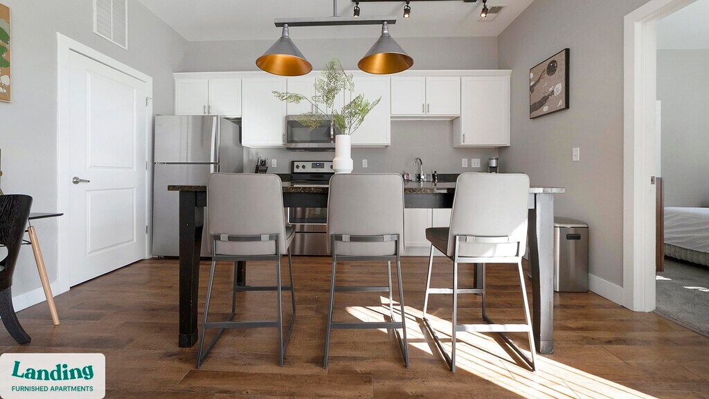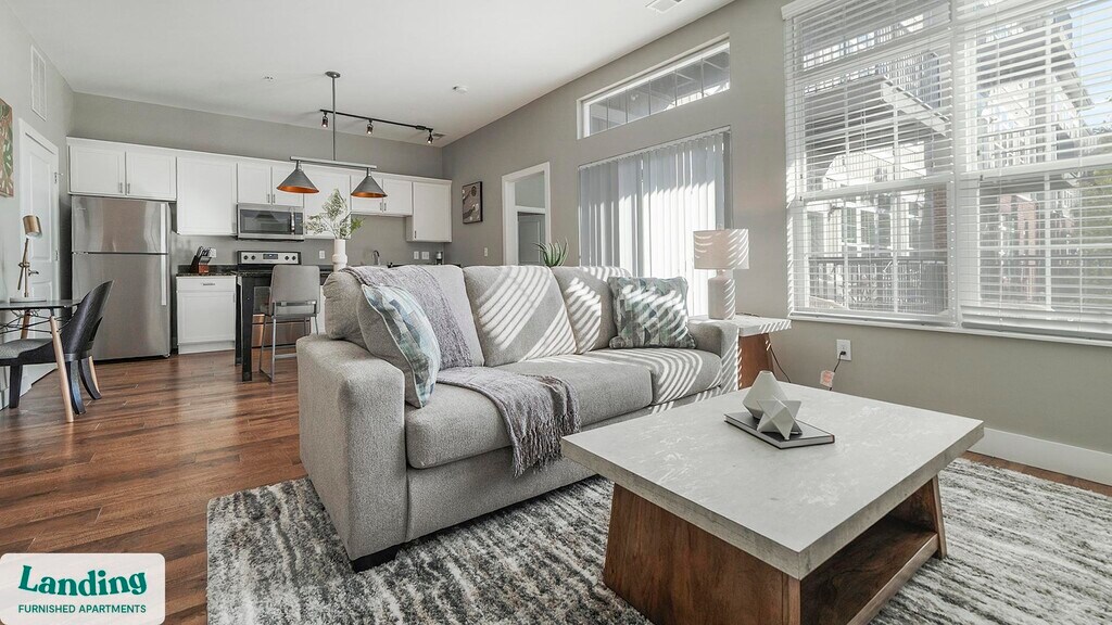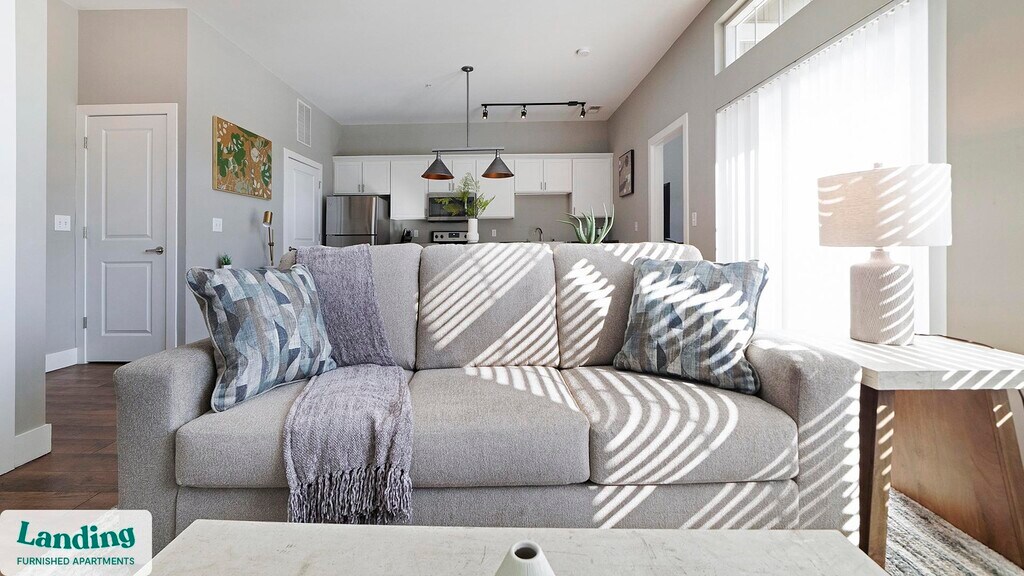 Landing offers flexible lease terms from weeks to months. Please always visit our website or contact us for the latest pricing & availability. Stay longer, save more: 6-Month Minimum base rent: starts at $3349/mo 12-Month Minimum base rent: starts at $2981/mo Landing offers flexible leases across a network of over 35,000 fully-furnished apartments throughout 375+ cities so you can rent on your terms, practically anywhere, and avoid the hassle of paying deposits or application fees. Visit to learn about all the benefits of a Landing membership, see our competitive up-to-date pricing, explore available apartments, take virtual tours, and make reservations online without jumping through traditional rental hoops. Landing's apartments at Statehouse Highline on 9th are designed for comfortable, easy living, with the ability to stay as long as you like. Experience living with Landing Every apartment is outfitted with all the modern essentials including: custom-designed furnishings, a fully-equipped kitchen with deluxe stainless steel appliances, a gourmet coffee maker, premium linens, Smart TVs, and incredibly fast, reliable internet for working from home. When you live with Landing, you'll enjoy a hassle-free experience with the added benefit of 24/7 access to our dedicated member experience team. Some of the nitty-gritty: a background check and proof of income are required; we're completely smoke-free; bundled utility packages and pricing vary based on length of stay; pet-friendly options available; listed price reflects a 12-month minimum stay.