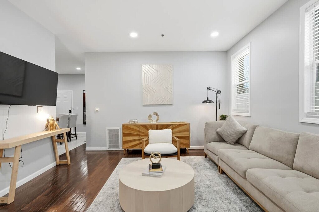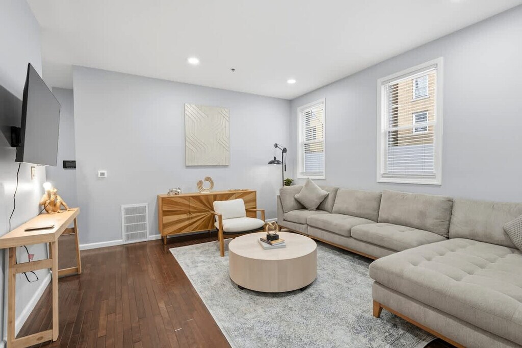 The advertised rate of $4,750/month is the lowest available price, based on a 30 day(s) stay with a move-in date of March 8, 2026. Rates vary depending on the duration of stay, season, and other parameters. For exact pricing and additional pricing components, please visit our website and enter your desired move-in and move-out dates. The rate is applicable when billed upfront; it can be higher if billed in multiple payments. Feel at home in this spacious luxury 3-bedroom, 2-bath apartment in Jersey City, located on the first floor. Just steps from the PATH train, you can access NYC in minutes. This modern home comfortably sleeps up to 8 guests and features an open, airy layout, stylish, high-end furnishings, and smart TVs in multiple rooms. The fully equipped kitchen makes cooking a breeze with a stove, oven, microwave, refrigerator, dishwasher, coffee maker, and all essential cookware. Both bathrooms include a bathtub and shower 2-in-1, soft towels, and essential toiletries. Enjoy the rare convenience of a private parking spot, perfect for your vehicle. An air mattress and a travel pack and play crib are available. This apartment is in a lively area of Jersey City, a short walk to cafés, restaurants, and local shops. The PATH train is only steps away, making Manhattan easily accessible in minutes. You’ll also find parks for a quick stroll and essential services like grocery stores and convenience shops nearby. With quick access to Hoboken, Newport Centre Mall, Liberty State Park, and the Lincoln Tunnel, the neighborhood combines city energy with everyday convenience, perfect for families, groups, or business travelers. This is a non-smoking property, and no parties or events are allowed. Please respect neighbors and keep noise reasonable. Only park in the designated spot; cars parked elsewhere may be towed or ticketed. Late check-out is penalized with up to $500. Pets are not allowed unless otherwise approved. Check-in and check-out times must be followed. Includes a workspace in bedroom 2 and high-speed Wi-Fi throughout. Registration Number: STR- [SI]