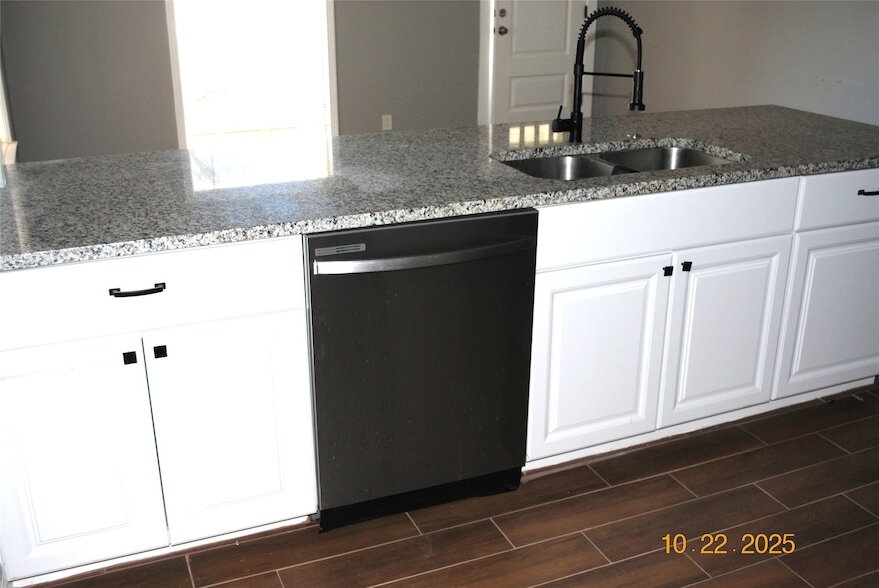 Fully updated with vinyl flooring in living areas and carpet in bedrooms. Open living area. Kitchen has black appliances including microware and refrigerator, quartz counters, breakfast bar. Utility room has built in sink and washer dryer. Master is split for privacy. Shower and double vanity with walk in closet. Other bedrooms have updated bathroom with shower. Ceiling fans throughout. Blinds in place. Colors are soft gray and whites. Oversized wood & chain link fenced yard. Small deck off master bedrooms. Near elementary and high school. Quick access to I 45 and I 20. Open field makes it feel like country but in an established residential area.