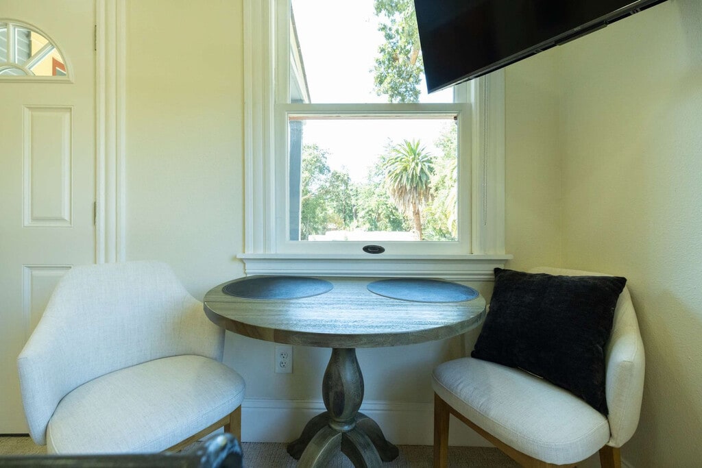 Welcome to this cozy 1-bedroom, 1-bath apartment in a fully restored turn-of-the-century home. Enjoy the privacy of your own entrance and a private yard space, complete with a massive oak tree, wrought iron dining table, lounge space with loungers, private lawn, barbecue, and beautiful views. Located just 12 miles from Berkeley, 14 miles from Oakland, and 21 miles from San Francisco, this apartment is also an ideal base for visiting wine country, only 21 miles from downtown Napa. Situated in a quiet, safe neighborhood in Martinez, CA, you'll be close to eclectic coffee shops, restaurants, and breweries. Step inside your private, attached apartment, a beautifully restored piece of history. The bedroom is your sanctuary, featuring a comfortable queen-sized bed for a restful night's sleep. The full bathroom offers a relaxing bathtub and shower. The heart of the apartment is the fully equipped kitchen, complete with modern stainless steel appliances including a refrigerator, microwave, and coffee maker. You'll find all the essentials for preparing meals, from pots and pans to utensils. Enjoy entertainment on the smart TV, ready for your favorite streaming apps. Outside, you'll have access to a spacious private yard, perfect for relaxation and outdoor dining, and providing a safe, open space for your pets to explore and enjoy. The yard boasts a massive oak tree providing shade, a wrought iron dining table, and a lounge area with comfortable loungers. A barbecue grill is available for your use, and a private lawn area completes the outdoor experience. Parking is readily available with a private garage for your use. Nestled in the heart of Martinez, your charming retreat offers a peaceful escape with convenient access to local amenities. Just a short drive away, you'll find a variety of dining options, from cozy cafes to family-friendly restaurants. Explore the local shops and boutiques for unique finds and souvenirs. For those seeking outdoor adventures, nearby parks and trails offer opportunities for hiking and enjoying the California sunshine. The historic downtown area is a short drive, offering a glimpse into the town's rich past with its charming architecture and local events. You're also within easy reach of local breweries and wineries, perfect for a relaxing afternoon. Whether you're looking for a quiet getaway or a base to explore the surrounding area, our neighborhood provides a perfect blend of tranquility and convenience. Check-in is at 3:00 PM, and check-out is at 11:00 AM. This is a non-smoking property; smoking is prohibited inside the apartment and on the premises. Pets are welcome with a fee of $25 per pet per night. Please be respectful of the neighborhood and keep noise levels to a minimum, especially during the evening. The kitchen is fully equipped for your use; please ensure all dishes and utensils are cleaned and put away before you leave. [SI]