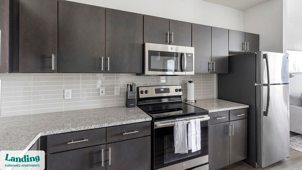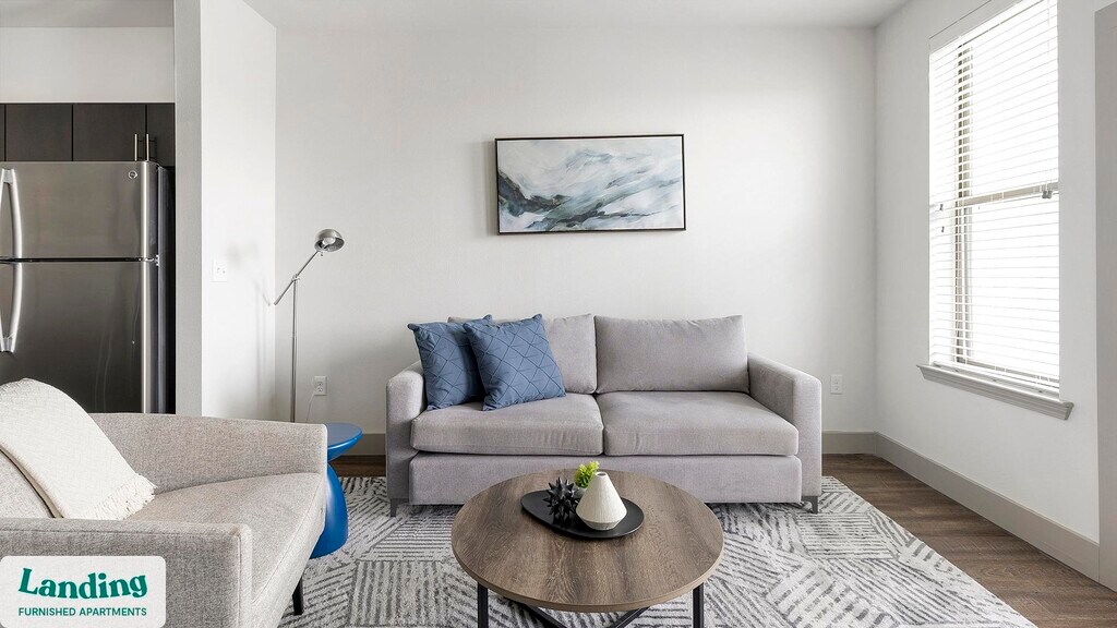 Landing offers flexible lease terms from weeks to months. Please always visit our website or contact us for the latest pricing & availability. Stay longer, save more: 6-Month Minimum base rent: starts at $1926/mo 12-Month Minimum base rent: starts at $1689/mo Landing offers flexible leases across a network of over 35,000 fully-furnished apartments throughout 375+ cities so you can rent on your terms, practically anywhere, and avoid the hassle of paying deposits or application fees. Visit to learn about all the benefits of a Landing membership, see our competitive up-to-date pricing, explore available apartments, take virtual tours, and make reservations online without jumping through traditional rental hoops. Landing's apartments at Bellrock Upper North are designed for comfortable, easy living, with the ability to stay as long as you like. Experience living with Landing Every apartment is outfitted with all the modern essentials including: custom-designed furnishings, a fully-equipped kitchen with deluxe stainless steel appliances, a gourmet coffee maker, premium linens, Smart TVs, and incredibly fast, reliable internet for working from home. When you live with Landing, you'll enjoy a hassle-free experience with the added benefit of 24/7 access to our dedicated member experience team. Some of the nitty-gritty: a background check and proof of income are required; we're completely smoke-free; bundled utility packages and pricing vary based on length of stay; pet-friendly options available; listed price reflects a 12-month minimum stay.
