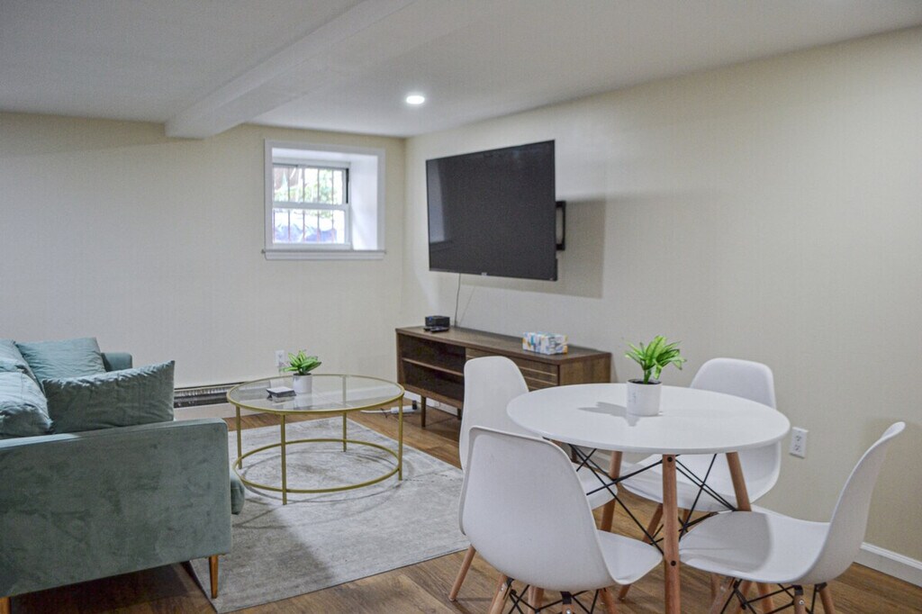 Stay in the heart of Brooklyn’s Sunset Park in this bright and updated garden-level 2-bedroom apartment. With an open layout and plenty of natural light, it’s the perfect spot to relax after exploring the city. Hop on the D train just 2 minutes away and be in Lower Manhattan in about 30 minutes. Whether you’re here for a cozy getaway or an easy home base for NYC adventures, you’ll feel right at home in this spacious and comfy retreat. This unit is located on the garden/lower level of a multifamily property and requires using stairs to access. Enjoy your own private 2-bedroom basement unit with no shared spaces—just comfort and convenience all to yourself. The apartment features a cozy living room with a plush sofa and a 55" Smart TV, two queen bedrooms each with a work desk, and a fully equipped kitchen with essentials. The bright, spa-like bathroom includes a tub, and reliable 100mbps Wi-Fi ensures you stay connected. Free street parking is available right outside. This home is designed for extended stays, ideal for business travelers, medical professionals, or those relocating for 31+ nights. Ask about our extended stay discounts—the longer you stay, the more you save! Your home away from home in Sunset Park, Brooklyn, is less than 2 miles from Sunset Park and only a 5-minute walk to the subway, making it easy to get anywhere in the city. Convenient access to NYC highlights includes Walgreens (7 min by car / 15 min by train), Brooklyn Bridge (26 min by car / 35 min by train), Brooklyn Museum (22 min by car / 24 min by train), and Downtown Manhattan (30 min by car or train). Ceiling height is just under 7 ft (214 cm). Most guests find it perfectly comfortable, but if you’re over 6 ft tall, it may feel a bit snug. A washer/dryer is not included, but a laundromat is nearby for easy access. The unit is not pet-friendly. No smoking or vaping indoors or in the garage, with a $500 cleaning fee for violations. Quiet hours are from 9 PM to 7 AM daily to ensure a peaceful stay for all guests and neighbors. Entry is effortless via a smart lock—your unique code will be shared 24–48 hours before arrival. Each queen bedroom is equipped with a work desk, providing a comfortable space for remote work. [SI]