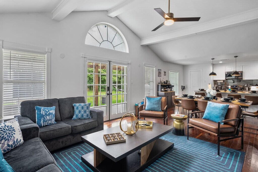 Discover your perfect getaway in charming Lakeside, TX with this beautifully remodeled 3-bedroom, 2-bathroom home offering a serene escape. The spacious primary bedroom boasts a king-size bed and en-suite bathroom, while the second bedroom features a queen bed, and the third has a queen bunk bed. Feel at home with smart TVs in every room, a vast backyard with outdoor seating, and an outdoor playroom for kids. Step inside to a warm and welcoming atmosphere. The living area is designed for relaxation, featuring comfortable seating and smart TVs with access to streaming channels in every room. Enjoy a fully stocked kitchen with a wall-mounted pot filler for convenience while cooking family meals, and a coffee and cocktail bar to start and end your day perfectly. Optional kayak rental is available directly from us, located a block away on the dock of a lakeside property. Two kayaks are available for daily rentals with a 24-hour notice required to guarantee availability. Only dogs are allowed with a maximum of two per reservation, and a leash is required as there is no fenced-in area. Located just a block from the lake park with full public lake access, this home offers views of the marina and is close to the nature center, Sansom Park, and a short drive to downtown Fort Worth, the zoo, and more. Enjoy the best of Lakeside and Fort Worth with ease. Potential noise during the day may occur due to nearby military base fighter jet training above the lake, which can be noticeably loud. Check-in is after 4:00 PM and checkout is at 11:00 AM, with self-check-in available via SmartLock. No parties or events are allowed unless explicitly granted privilege in writing. Unauthorized events will incur a $500 fee and may result in immediate eviction without refund. The hot tub cover must be kept on when not in use to maintain water balance. There is one locked closet in the hallway for cleaning supplies, which is off-limits to guests. This home does not include a dedicated home office set-up, but offers Wi-Fi access throughout the property for your convenience. [SI]