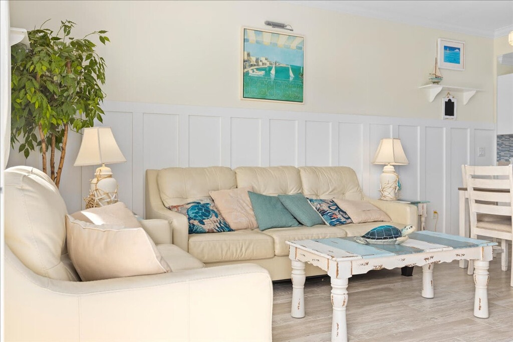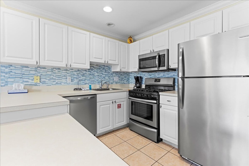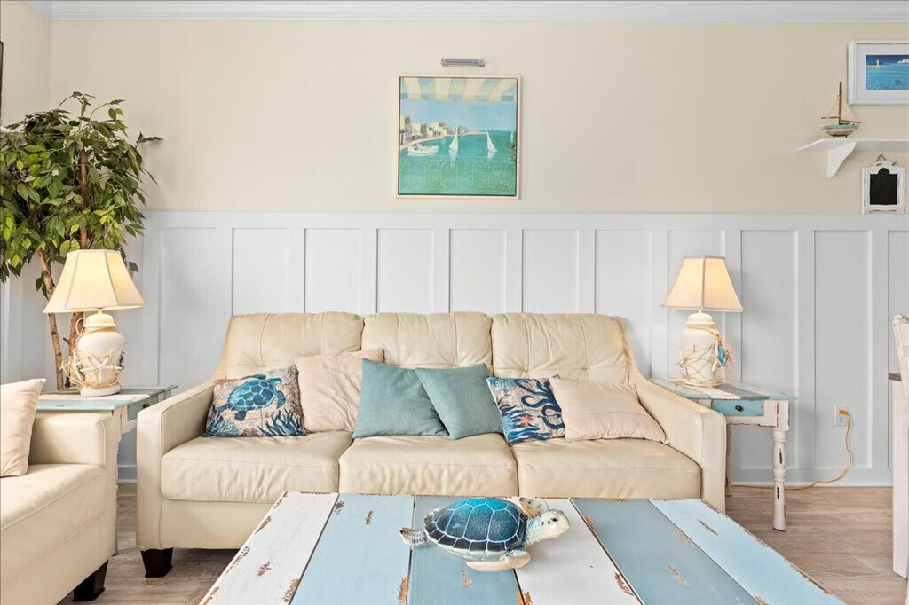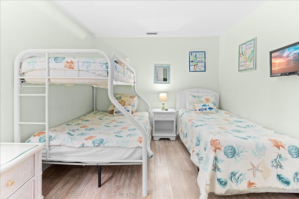 Nestled in Wildwood, this 3-bedroom, 2-bath condo is perfect for a Jersey Shore getaway. Feel at home in a bright and airy space with coastal decor, a private balcony offering beach views, and access to a community pool. The fully stocked kitchen features stainless steel appliances, making meal prep a breeze. Additional amenities include Smart TVs, free parking, and an in-unit washer and dryer. This condo is ideal for families and groups looking to stay steps from the beach while enjoying a comfortable and stylish retreat. It features three well-appointed bedrooms, including a king-size bed with an en-suite bath, a queen bed, and a double bed with a bunk bed. The living room offers a cozy space with a sofa bed, Smart TV, and fireplace. Fresh bedding and towels are provided, along with high-quality bath essentials. The condo offers free parking on-site and access to a community pool. While pets are not allowed, the property ensures a peaceful retreat with quiet hours from 10 PM to 8 AM. Centrally located in beautiful Wildwood Crest, this condo is ideally positioned to give you easy access to all the best attractions the area has to offer. Just a short 2-minute walk from your condo, you’ll find yourself on soft, wide sandy beaches perfect for sunbathing, swimming, and beach games. The world-famous Wildwood Boardwalk, with its amusement rides, shops, and restaurants, is just a short drive or bike ride away. Wildwood Crest is home to a variety of local restaurants, cafes, and ice cream shops, many of which are within walking distance or a quick drive from your condo. Additionally, grocery stores and convenience shops are just a short distance away for all your vacation needs. The condo accommodates a maximum of 8 guests. No pets are allowed and no parties or additional guests without permission. Smoking is prohibited on the premises, and any evidence of smoking will incur an additional cleaning fee. Quiet hours are from 10 PM to 8 AM. Exterior security cameras are present on the property for your safety. Self check-in is available with keyless entry, and a photo ID is required after booking. The condo is equipped with high-speed Wi-Fi, making it perfect for remote work and video calls. A laptop computer is not included.