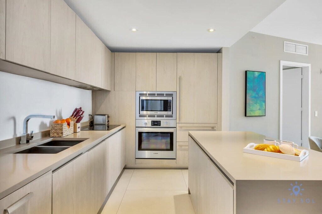 Feel at home in this luxury 2-bedroom ocean view unit located in Lyfe Resort and Residence, in front of Hollywood Beach and a few minutes' drive to Aventura Mall and Sunny Isles Beach. This well-appointed apartment mixes natural wood and stone with organic textures and state-of-the-art technology. Highlights include a fully equipped kitchen and a large balcony to enjoy a panoramic view of the ocean. The fully equipped kitchen offers a stainless steel refrigerator/freezer, glass stove, integrated oven, silent dishwasher, integrated microwave, stove, dishes, coffee maker, hairdryer, iron/ironing board, in-suite washer/dryer, and TVs in each room. Amenities include two infinity-edge ocean pools, a sundeck, private cabanas, a hot tub, a fitness center, and beach service. A pack-n-play crib is available upon request. Package service is available Mondays to Sundays (8 am - 4 pm) for $5.5 per package. After-hours package service is available for $27.5 per package. Valet parking is available for 1 to 7 days at $35 per day, 8 or more days at $30 per day, a monthly rate at $650 per month, and stays of 6 months or more at $480 per month. Just beyond the resort, you'll find the Hollywood Beach boardwalk and miles of Blue Wave-designated beaches. Surrounded by lots of restaurants and the world-famous Gulfstream Park, where you can dine, enjoy horse races, or try your luck at the casino five minutes away. To the west, you can visit the famous colossal Hard Rock Guitar Hotel & Casino, and it is the perfect location to be on the beach if you are attending an event at Hard Rock Stadium. To the south, you can continue to the renowned Aventura Mall, or if you feel like going on an adventurous nightlife, you can head to South Beach to party all night. To the north, you can enjoy more shopping and restaurants in the city of Fort Lauderdale. This apartment is minutes from Fort Lauderdale Airport. Please keep all doors closed and the air conditioning on at all times to help prevent condensation and property damage. Swimming is at your own risk; no lifeguard is on duty. Children must be supervised by a responsible adult at all times. No diving or running is allowed. The property management is not liable for any accidents, injuries, or losses that may occur while using the pool or surrounding areas. [SI]