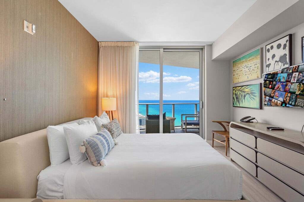 Feel at home in this oceanfront luxury retreat in Hollywood Beach. Perched above the shoreline, this condo offers breathtaking, direct ocean views. This modern 2-bedroom, 2-bath condo is designed for comfort and luxury. This apartment features a private balcony with panoramic Atlantic views, a living area with a cozy sofa bed and Smart TV, a master bedroom with a queen-size bed and TV, and a second bedroom with two double beds and TV. The kitchen is fully equipped with modern appliances and dining essentials. A washer and dryer are included for added convenience. Beach service is available, including two chairs and one umbrella, weather permitting, and can only be used once per day. Valet parking is available for stays of 1–7 days at $35 per day, for 8+ days at $30 per day, or monthly at $650. For stays of 6 months or more, the monthly rate is $480. Package pick-up is available from 8 AM to 4 PM for $5.50 per package or after hours for $27.50 per package. Perfectly positioned for both relaxation and adventure, this apartment offers easy access to world-class shopping, dining, and entertainment across South Florida. Aventura Mall is just a 20-minute drive away. The ocean is steps away. Gulfstream Park and the Art & Culture Center are minutes away. You'll be surrounded by restaurants, golf parks, shopping centers, bars, and clubs. At least one guest must be 21 years or older. After booking, you must provide the full names of all guests staying in the apartment to register with the building and ensure a smooth check-in. If the requested information is not received at least 24 hours before arrival, the reservation may be canceled. Internet service is shared across the building and may vary in speed. This apartment is part of a private residence and is not affiliated with the hotel front desk or staff. Cleaning service is provided only once at check-out. The apartment will be stocked with basic supplies for your first day. You must register all members staying with you by providing a photo ID on the same day as check-in. A resort fee is charged daily: $40 per day for stays of 1–14 nights, $35 per day for stays of 15–29 nights, and $30 per day for stays of 30+ nights. Check-in is scheduled for 4:00 p.m., and check-out is at 11:00 a.m. If you need a late check-out, please contact us with 24 hours' notice, which will generate an additional cost. In case of any lost linens or apartment keys, an additional cost will be charged to replace them. Remember to turn off the air conditioning when leaving. [SI]