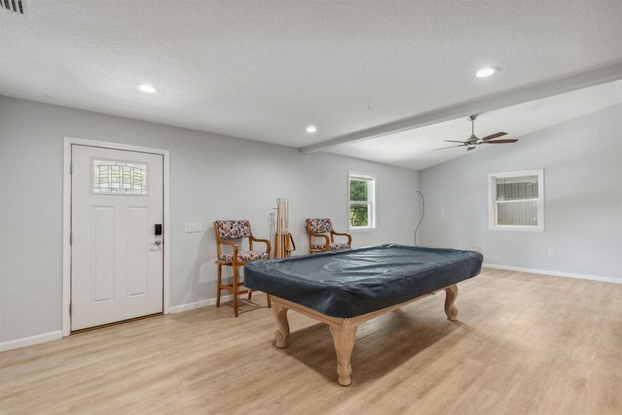 Walk to Downtown Fernandina and the riverfront from this charming property. This home features 3 bedrooms, 2 bathrooms, and a detached 2-car garage. The backyard is a private oasis with shade trees, a paver stone patio, and an outdoor shower. Additional features include an oversized carport, a storage shed, and recent upgrades in 2015 including roof, plumbing, electrical, and energy-efficient spray foam insulation adding ease to renting! Zoned for A rated Nassau County schools.