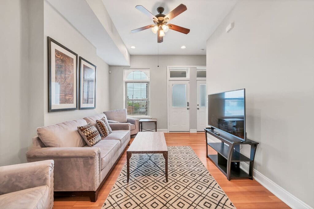 Experience the best of St. Louis with this entire building offering two 3-bedroom apartments, each featuring 10 queen-size beds. With all-new furnishings, upscale modern decor, and private parking, this townhome ensures a comfortable stay. Its central location and proximity to public transportation make exploring St. Louis hassle-free. Each apartment is thoughtfully designed with modern decor and new furnishings. The units include outdoor furniture, although the seat and back cushions are stored during the fall and winter seasons. Both units offer two full bathrooms, providing ample space for guests. Private parking is available for guests. Situated in a central location, this property offers easy access to public transportation, making it convenient to explore all that St. Louis has to offer. Check-in is at 4 PM, and check-out is at 11 AM. Guests will receive check-in instructions one hour prior to arrival. Smoking is strictly prohibited, with deodorizing fees starting at $500 for violations. Noise complaints result in immediate police contact, and any parties or events will lead to a loss of the security deposit. The Nest thermostats are locked within specific temperature ranges. Maximum occupancy is limited to the number of guests on the reservation, and any excess will result in a loss of the security deposit. Furniture must not be moved, and any movement incurs a $100 fee per piece. Firearms and weapons are strictly prohibited on the property. [SI]