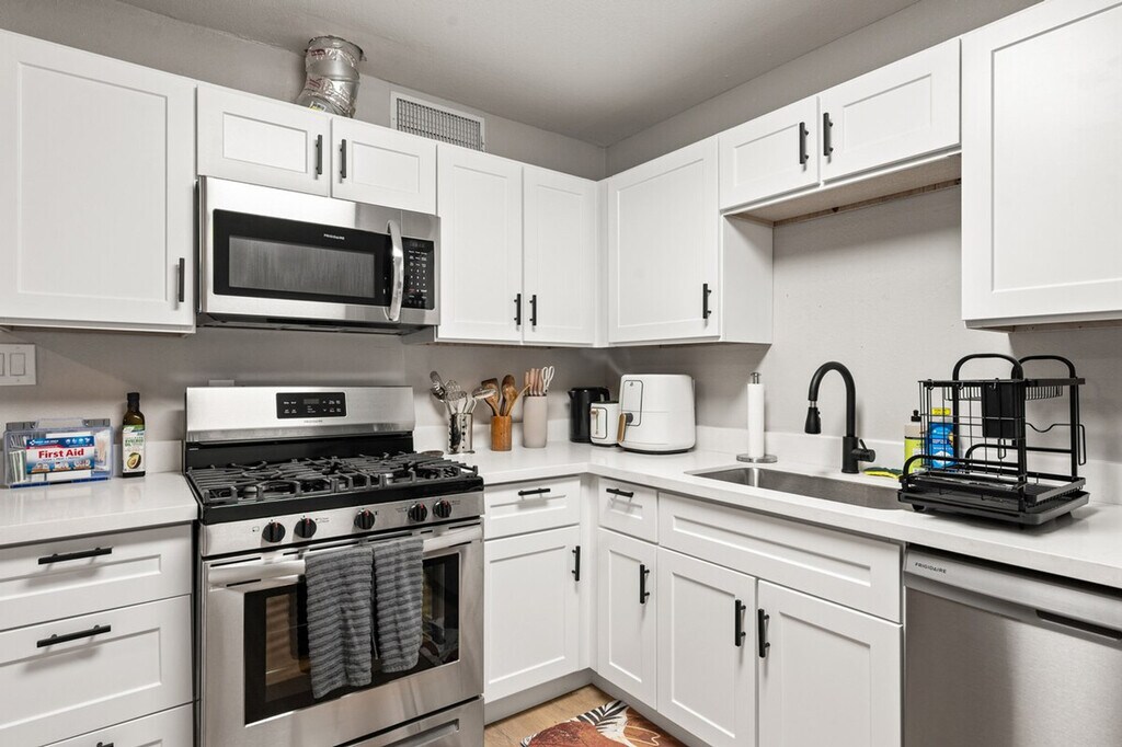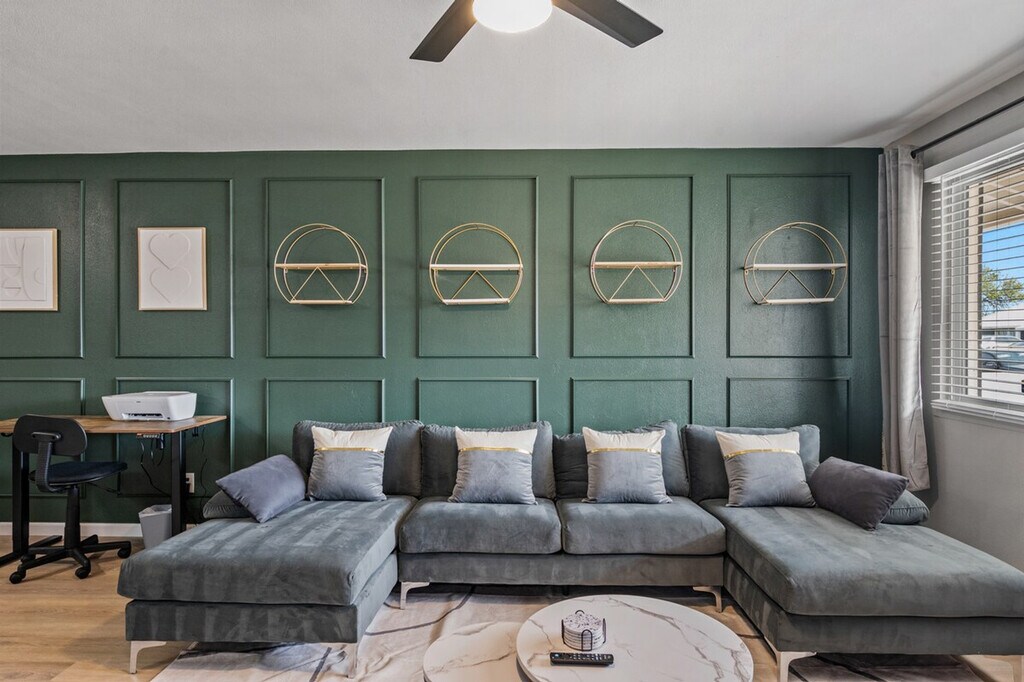 Feel at home in this fully furnished 3-bedroom apartment in Phoenix. This gated property features 2 full baths. This apartment is fully furnished and includes a full kitchen, central AC and heating, a backyard, and is fully fenced. The kitchen has a full fridge, gas stove, microwave, oven, dishwasher, air fryer, coffee maker, blender, toaster, and water kettle. There is also a dining set with 4 seats and 3 bar stools, a washer and dryer, and 4 smart TVs. This apartment is pet friendly with a fee of $150 per pet. Free parking is available. This apartment is conveniently located 5.8 miles from Downtown Phoenix, 7.4 miles from Chase Field, 10.5 miles from Phoenix Rising FC Stadium, 12.7 miles from the Phoenix Zoo, 12.5 miles from State Farm Stadium, 12.6 miles from Papago Park, 13 miles from the Desert Botanical Garden, 13.8 miles from Phoenix Municipal Stadium, 16 miles from Scottsdale Stadium, 16.3 miles from Old Town Scottsdale, 16.4 miles from Scottsdale Fashion Square, and 16.6 miles from Tempe Marketplace. It is also located 3.3 miles from Grand Canyon University and 15.1 miles from Arizona State University (ASU). Other facilities include Phoenix Airport (9.7 miles) and TSMC (24.8 miles). Hospitals in the area include Phoenix Children's Hospital (4.3 mi), Select Specialty Hospital - Phoenix (4.5 mi), Saint Joseph's Hospital (4.5 mi), Abrazo Central Campus (5.9 mi), Carl T. Hayden Veterans' Administration Medical Center (6.1 mi), Phoenix Children's Hospital (6.4 mi), Banner - University Medical Center (6.6 mi), Valleywise Health Medical Center (8.2 mi), HonorHealth John C. Lincoln Medical Center (11.1 mi), Banner Thunderbird Medical Center (11.3 mi), HonorHealth Deer Valley Medical Center (15.4 mi), and Mayo Clinic (25.1 mi). Smart lock and lockbox access are available with a private entrance. Includes a desk, chair, shredder, printer, and high-speed Wi-Fi. [SI]