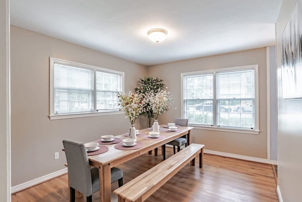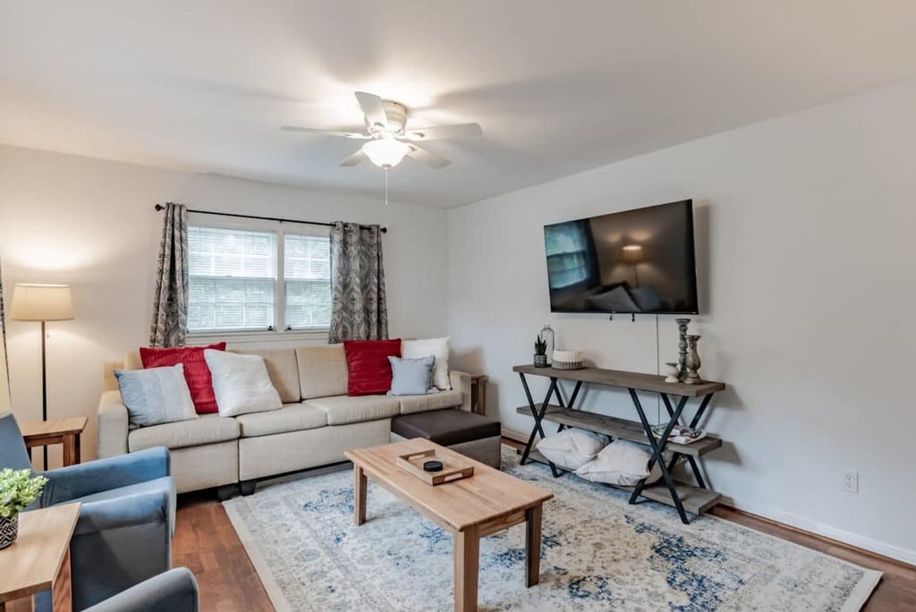 Feel at home in this charming three-bedroom, two-bathroom residence, perfect for families, business professionals, or anyone seeking a reliable stay. With the capacity to sleep 15 guests, this home offers a cozy living room and bedrooms, complemented by the vintage vibes of a fully equipped kitchen. Conveniently located about ten minutes southwest of downtown Mobile, the property provides easy access to I-90, making it simple to enjoy all the best of Mobile. Guests will enter through the front door using a digital door code. Inside, the foyer leads to a spacious living room featuring a queen sleeper-sofa, a large smart TV, and ample seating. The fully equipped kitchen is ready to assist in preparing meals, which can be enjoyed at the handmade farmhouse table with bench seating in the dining room. A half bathroom is located downstairs. Upstairs, there are four bedrooms: the first with a king bed, ample closet space, a cozy reading nook, and an en-suite bathroom; the second with two queen beds; the third with two full beds; and the last with a twin over twin bunk bed. A shared full bathroom is available in the hallway. A pack 'n play/travel crib is available upon request. Pets are welcome with a non-refundable fee. Pets must be crated when left unattended, are not allowed on furniture or beds, and all waste must be cleaned from the yard. If there is evidence of pet hair on the furniture, excess hair in the home, stains, or waste found in the yard or home, you will be charged the cost to clean this. Situated in a residential neighborhood, this home is convenient to grocery stores, shopping, restaurants, and downtown Mobile. While Uber, Lyft, and other taxi services are available, driving is encouraged for ease of access. Guests must be at least 21 years of age to rent this property. Smoking is prohibited, and if any signs of smoking are detected, a $500 damage charge will be incurred. The same charge applies if cigarette butts are found outside. If marijuana is smoked in or around the home, a $500 fee will be charged, and details may be turned over to authorities. Parties are prohibited, and quiet hours between 10 PM and 7 AM must be respected. Violating quiet hours may result in reservation cancellation without a refund. Guests are responsible for any damage to the home or furnishings during their stay. Excessive trash left at the property will incur a $100 charge for third-party removal.
