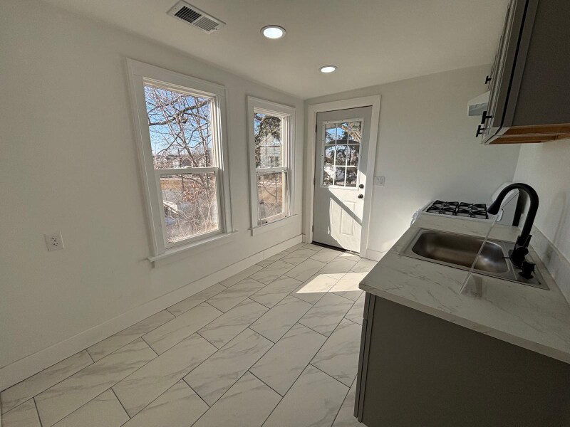 Property Id: 2149181 Large upper apartment in a duplex. Completely remodeled, new floors, windows, bathroom, kitchen. Has 2 BR plus one room which functions as BR or separate dining room. All utilities included in your $1,300 payment.