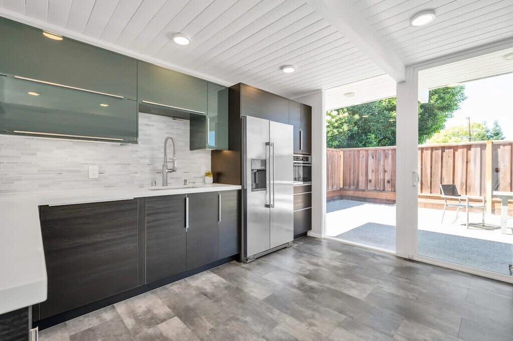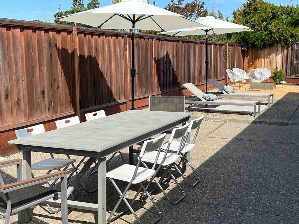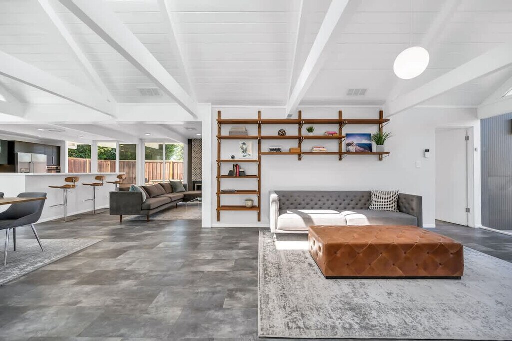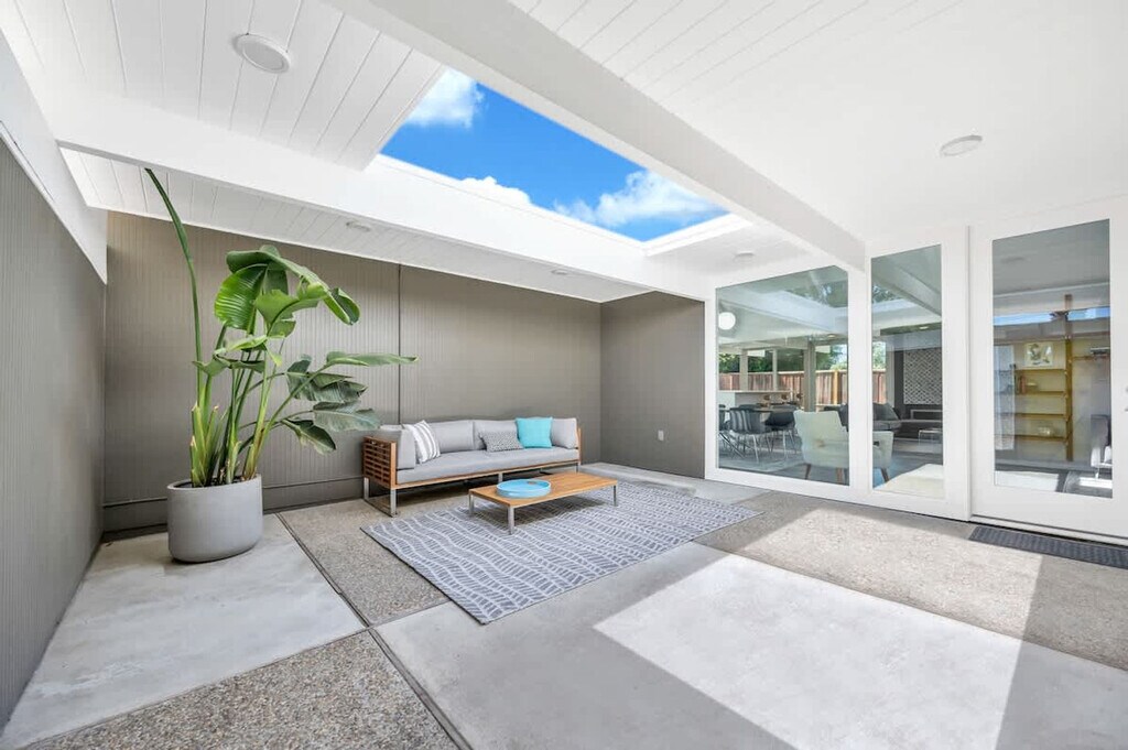 Beautifully renovated Mid Century Modern Eichler home with an open floor plan, ideal for entertaining or relaxing. Glass walls and skylights illuminate this architectural gem, offering an indoor/outdoor lifestyle in sunny California. Located 38 minutes from San Francisco, 40 minutes to Napa Valley, and 60 minutes to Muir Woods, with proximity to Northern California beaches. This stunning Eichler home in Concord, near the desirable Walnut Creek area, features three spacious bedrooms and two modern bathrooms, providing ample space for comfortable living. The open floor concept enhances the sense of space and light, with the living area opening to a beautifully landscaped backyard, perfect for outdoor activities. High-end finishes and attention to detail reflect its luxurious nature, offering a lifestyle of comfort and elegance. The open concept kitchen leads to the backyard and outdoor table, with multiple loungers and umbrellas for enjoying the California sun. An open-air atrium at the entrance provides a relaxing spot to listen to the palm trees sway. Ample parking is available in the driveway and on the street in front of the house. Situated in a private location on a quiet cul-de-sac in a mid-century modern neighborhood, the area boasts well-kept landscaped front yards. Free parking is available in the cul-de-sac and nearby streets. The BART train station is just two miles away, offering stops throughout the Bay Area. Walnut Creek, with its high-end restaurants and bars, is just two stops away or a 15-20 minute drive, depending on traffic. No parties or large gatherings are allowed, as this is a quiet residential neighborhood. Guests are asked to respect neighbors with quiet hours between 10pm and 7am. No shoes inside, and no smoking is permitted on the premises, with a $1000 fine for violations. The property shall not be used by more than the number of guests listed in the reservation, and no pets are allowed. A late check-out fee applies, and guests staying over 30 days must sign a separate lease. Utilities over $150 for stays of 30 days or more will incur additional charges. Energy conservation is encouraged, especially during peak hours from 4-9pm. Must be 21 or older to book, and no firearms or weapons are allowed. Enjoy your stay! A property management company is available for any questions or emergencies.
