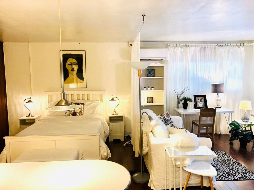 Feel at home in this charming beach cabana, a short-term rental perfect for working professionals in West Seattle. This fully furnished private apartment is located near Lincoln Park and Lowman Beach, offering a full-size bed, love seat, two desks, and a private kitchen and bath. Enjoy free parking and shared washer and dryer facilities. The cabana is situated behind the main house, with a flight of stairs leading to your entrance. Step into your own private beach bungalow, featuring a fully furnished apartment with a kitchenette equipped with plates, dishes, pots, pans, a microwave, and a toaster oven. While there is no dishwasher or garbage disposal, the space is ideal for simple meals like sandwiches and salads. The apartment includes a Smart ROKU TV, fast internet, and all the essentials for a comfortable stay. Weekly cleaning services are available for $100, ensuring a hassle-free stay. The monthly price includes all utilities and high-speed Wi-Fi, making budgeting simple and straightforward. Located in a serene setting, the cabana offers easy access to Lowman Beach and Lincoln Park, where you can enjoy hiking trails and a waterfront heated saltwater pool during the summer months. The area is perfect for nature enthusiasts, with opportunities to spot harbor seals, otters, dolphins, and whales. While public transportation is limited, the property is near the Fauntleroy Ferry to Vashon Island and Southworth, making it convenient for exploration. Due to allergies and allergy-aware cleaning procedures, no animals are allowed. The property is not suitable for children, and only one person is permitted to stay. Quiet hours are from 10pm to 8am, and no smoking, vaping, fires, or open flames are allowed on the premises. No parties or entertaining are permitted to maintain a peaceful environment. The cabana has a separate entrance, and while the owners live onsite, they respect your privacy. A $500 fine applies for false service animal claims, and a $1000 cleaning fee will be charged if such claims are found to be false. The apartment is equipped with two desks, chairs, a bookcase, and lamps, providing a comfortable space for remote work. A laptop computer is not included. [SI]
