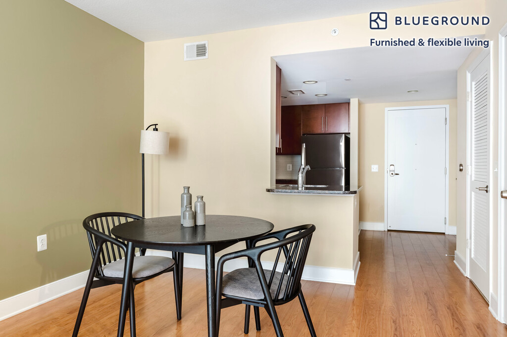 Feel at home wherever you choose to live with Blueground. You’ll love this spacious Mount Vernon Triangle furnished one bedroom apartment with its modern decor, fully equipped kitchen, and comfortable living room. Ideally located, you’re close to all the best that Washington, D.C. has to offer! (ID #WDC889) The advertised rate of $2,990/month is the lowest available price, based on a 2 month(s) and 22 day(s) stay with a move-in date of May 19, 2026. If you’re looking for a 1-year stay, the rate is $2,730/month. Rates vary depending on the duration of stay, season, and other parameters. For exact pricing and additional pricing components, please visit our website and enter your desired move-in and move-out dates. The rate is applicable when billed upfront; it can be higher if billed in multiple payments. Brokers are welcome to reach out. Were you looking for an unfurnished lease? Try Blueground instead and upgrade from unfurnished to furnished living: - Furnished at rates comparable to unfurnished - No setup or furniture costs - save thousands - Move-in ready - save time, just bring your suitcase Designed with you in mind Gorgeous furniture, fully equipped kitchen, smart TV, and a premium wireless speaker are just a few of the amenities you’ll find inside this one bedroom apartment. Ideally located in Washington, D.C., you’ll find a lot to love outside as well. When you’re ready to relax, you’ll be happy to discover every Blueground bedroom comes with superior quality mattresses, fully stocked linens, and cozy towels. We handle everything so you can simply show up and start living. This apartment also offers in-apartment laundry. Sleeping arrangements Queen Bed, 63in/160cm Amenities Building amenities unique to this one bedroom apartment include an on-site: - BBQ Area - Doorman - Dryer - Elevator - Swimming pool - Washing machine - Lounge - Parking - Pets allowed Arrival and ongoing support The entire apartment is yours to enjoy! Throughout your stay, you’ll have access to our Client Experience team through the Blueground App. You can schedule additional cleanings, submit maintenance requests, and view our neighborhood recommendations with just a few taps. We’ll share all details upon confirmation of your stay. Other things to note Building amenities may have an extra cost. This Blueground apartment has flexible lease options, allowing you to book it for one month, a year, or more. Pets are welcome, though weight limits and breed restrictions apply and may incur fees. Parking is offered based on availability and is subject to a fee. We take great pride in ensuring every photo displayed is shot in our own units with our actual furnishings. That said, we regularly refresh our decor and furniture arrangement, which may differ from what’s pictured. [SI]