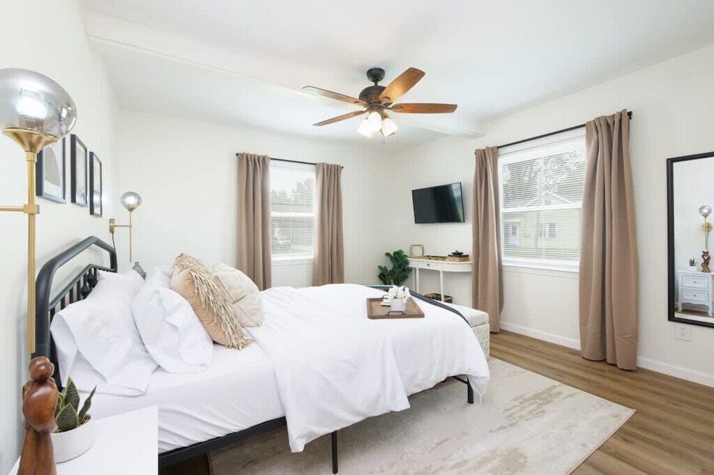 The advertised rate of $5,265/month is the lowest available price, based on a 1 month(s) stay with a move-in date of September 5, 2026. Rates vary depending on the duration of stay, season, and other parameters. For exact pricing and additional pricing components, please visit our website and enter your desired move-in and move-out dates. The rate is applicable when billed upfront; it can be higher if billed in multiple payments. Escape to this Port Clinton retreat, a peaceful getaway just minutes from the beach and Cedar Point. Feel at home in this spacious home that sleeps 8 across 4 bedrooms and features 1 bath. The kitchen is equipped with stainless steel appliances, including a Whirlpool gas stove, refrigerator, freezer, microwave, toaster, blender, and a Keurig coffee machine. Cooking basics such as pots, pans, oil, salt, and pepper are provided, along with dishes and silverware. The main living room features a Smart TV and a retro Nintendo-style game console loaded with classic games. Central air conditioning and heating keep the home comfortable in every season, while room-darkening shades and extra pillows ensure restful sleep. Guests have access to a free in-unit washer and dryer, free driveway parking, Wi-Fi with Ethernet connection, and self check-in via keypad. Essentials such as bed linens, cotton linens, hangers, iron, and clothing storage in closets and dressers are all provided. Safety features include a smoke alarm, carbon monoxide alarm, fire extinguisher, and first aid kit. Step outside to the private backyard, which includes an expansive deck with a gas grill and outdoor dining set with an umbrella. A separate patio area offers a gas fire table and conversation seating, creating a cozy place to gather under the night sky. The grassy yard also features a playground for children. Families traveling with young children will find thoughtful amenities such as a baby bath, and the option to request a paid crib or paid pack ’n play/travel crib. The home is just a short drive from the beach, local restaurants, and attractions, with Cedar Point located nearby. The location offers plenty of convenience for days on the water or afternoons exploring town. The stairs to the second floor are fairly narrow. Keep noise to a minimum outside, as there are decibel readers that track noise levels outside (these do not record conversations), and there is a $500 fine for excessive noise levels between 10pm-8am. A maximum of 2 dogs are allowed for a flat fee of $125 per stay; no cats are allowed. Requests to bring a 3rd or 4th dog are subject to approval and will incur an additional $100 fee. Undisclosed pets will result in a $150 fee. No indoor smoking is permitted, and there will be a minimum $500 charge for extra cleaning. Smoking outside is permitted. No underage consumption or drugs are permitted. No parties or large gatherings are permitted. There is a $150 charge for late checkout without prior notice. Renters must be 21 years or older to book and stay. Please remove your shoes when entering the house. [SI]